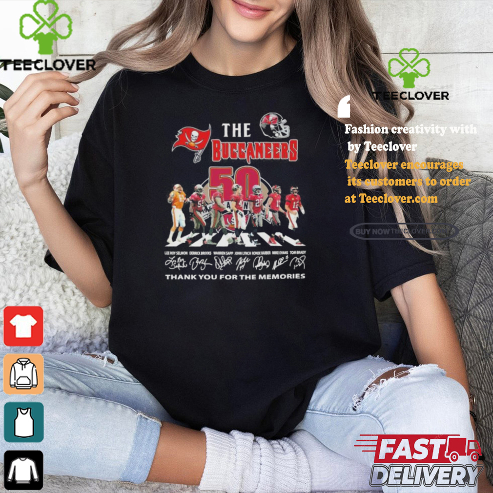 That being said, I agree, The Buccaneers Abbey Road 50th Anniversary Thank You For The Memories Signatures Shirt a picture of your daughter and find a before picture. Then I would go in person to speak to each child’s parents. As hard as it may be, try not to speak in anger and accusations. All that does is shut people down. Presenting facts and issuing a specific call to action will go much further. Go to the hosting parent and explain what happened, how it impacted your daughter and what you think is an appropriate response.