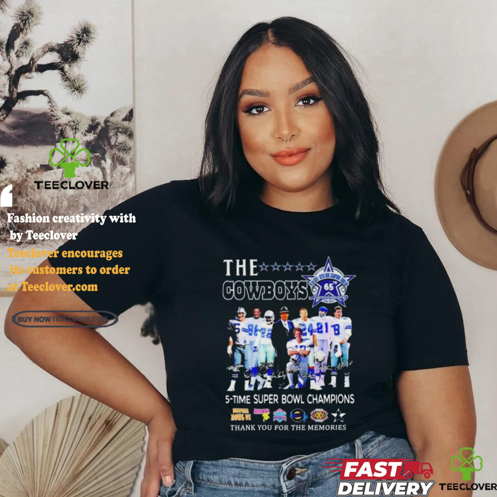 ()The Dallas Cowboys 65 Years Anniversary 5 Time Super Bowl Champions Signature Thank You For The Memories Shirt, Hoodie, Sweater, Vneck, Unisex and T-shirt