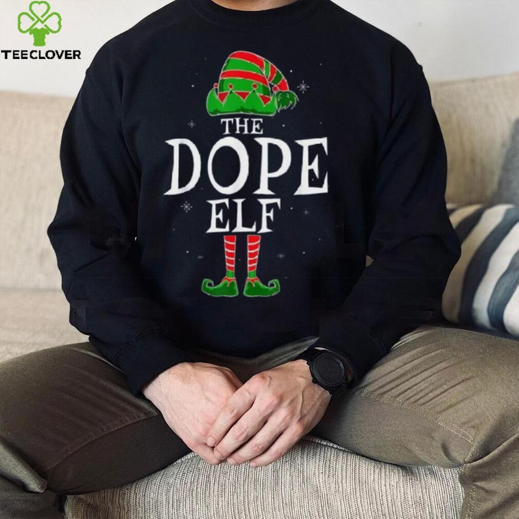 The The Dope Elf Group Matching Family Christmas Funny Cool Unisex Shirt to answering your question is experience. We exist to experience; we know we exist because we experience our own existence. The second key is observation. We observe our existence, our experience. We witness, record, and reflect upon our experience. The third key is intention. From observations of our experiences, we build a theory of “reality”, and make choices to act or not act based on that theory. We form an intention to create a specific experience that we want to observe. Now we have a sufficient solution to the problem. Experience, observation, and intention together create reality. They cannot exist without each other. None is more fundamental than the other, and none can be removed without destroying the others. Experience, observation, and intention: the grand experiment. We exist to try things, experience them, and observe the result. There is no meaning beyond that; when we are gone, all those things are gone too. We should use the little time we have to make as many experiments as possible. We have been blessed with the opportunity to experience, observe, and intend, and we should not waste it.