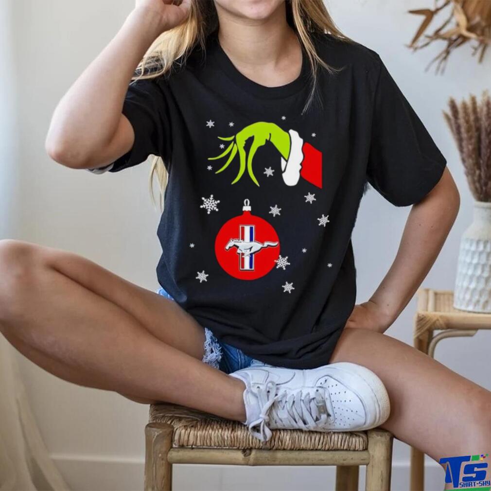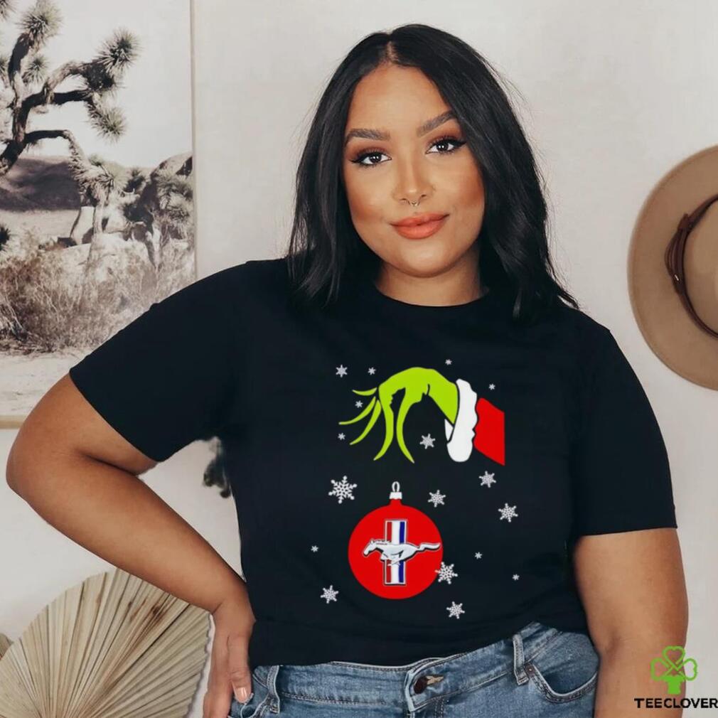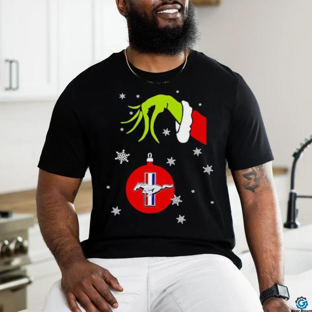 ()The grinch hand holding mustang shirt, Hoodie, Sweater, Vneck, Unisex and T-shirt