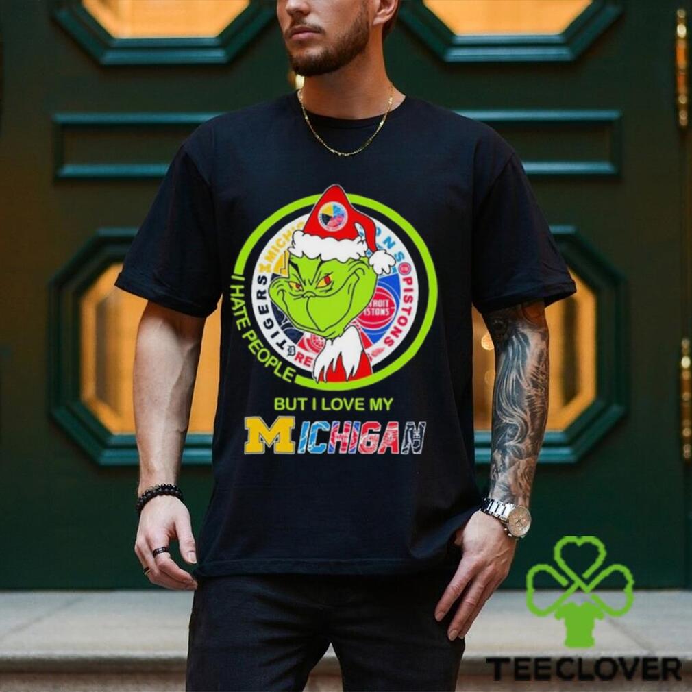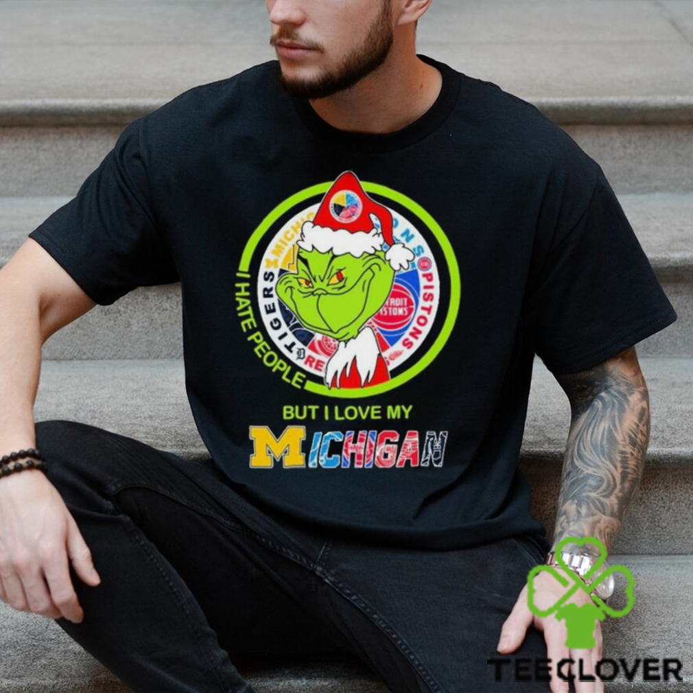 ()The Grinch I Hate People But I Love My Michigan Sports Teams Logo Tee Shirt hoodie, tank top, sweater and long sleeve t-shirt