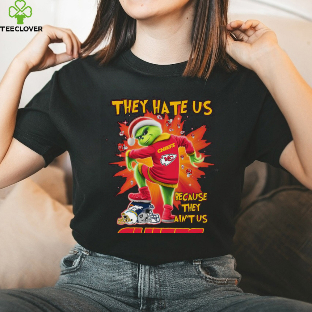 Best The Grinch They Hate Us Because Ain’t Us Kansas City Chiefs Stomp On Denver Broncos NFL Teams Christmas Shirt