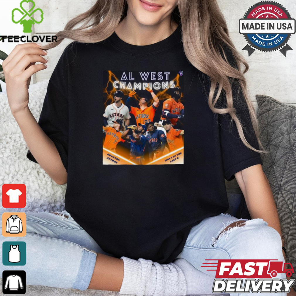 Keep an eye on Durant. If he The Houston Astros Have Won The West Again 2024 Shirt to work his already all-time great jumpshot and drive… He will not win. If he gets down low, gets the right offense to run through him, he will. I love his game, but he isn’t complete. Lebron is, Jordan and Magic were, so is Kobe… All of them got over their hump by completing themselves as players.