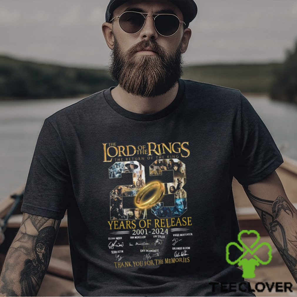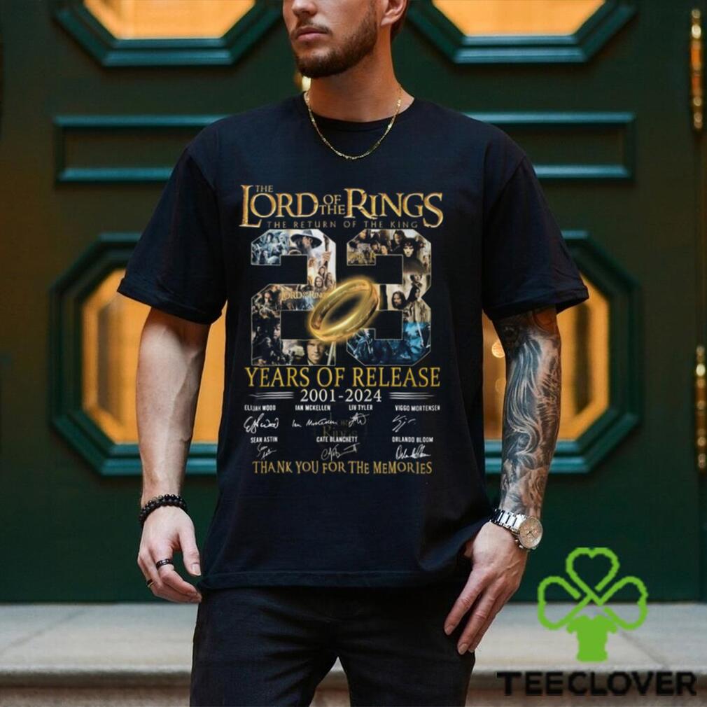 There is surely something is wrong with the The Lord of the Rings The Return Of The King 23 Years Of Release 2001 – 2024 Thank You For The Memories T Shirt of those who raise this kind of questions at all! Being politically and ideologically opposed does not mean an inveterate social and religious vengefulness. What was envisaged there is a certain kind of ideological framework for the country based on its age-old ethicality and prevent India from losing its identity in the flood waters of the anarchical and hegemony-anchored Western Culture. It is not because secular forces fight against ISIS or Al-Qaeda that secularists systematically despise Islam or its followers. Nor is it because India is engaged in a protracted conflict with Pakistan that India despises Pakistanis wholesale. Do understand that India has a very unique cultural ethos. All so, that the Western social ethos does only encouraging baser instincts of people and subtly acquires power over them in the name of controlling the consciously unleashed waywardness in the name of law.