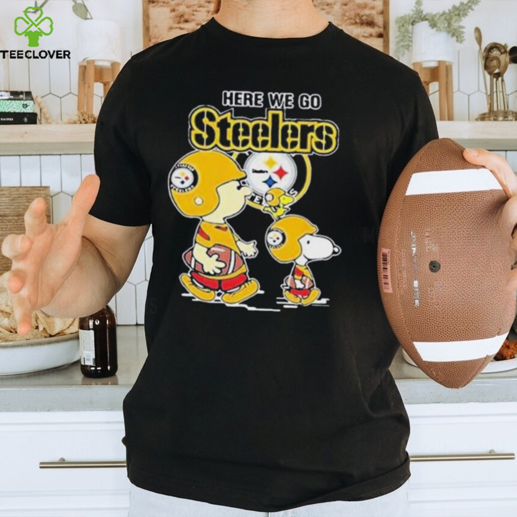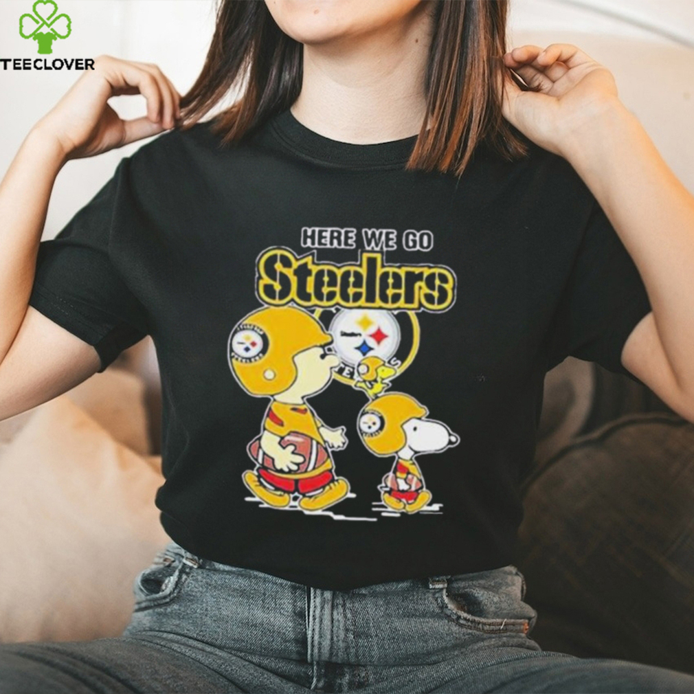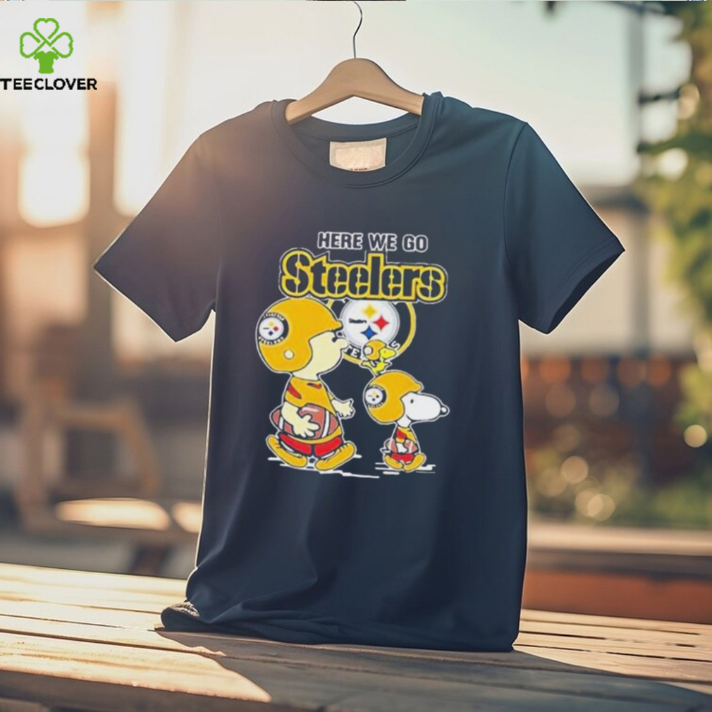 The Peanut charlie Brown Snoopy And Woodstock Here We Go Steelers T shirt