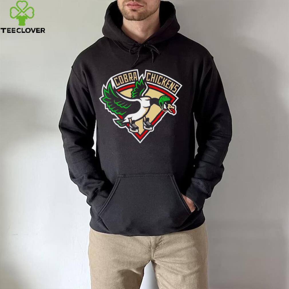 In terms of skills it depends what position they are moving from and to, but I think a season of training with a pro side and some regional amateur rugby games in the lower leagues followed by 1-2 seasons playing below the top flight would be required, if they had the right attributes to reach the top flight. It could be 2 years in total for a winger, or 4 for a more involved position with higher technical and tactical requirements. A player with exceptional physical attributes like being able to run a sub-11 second 100m at 275lbs and a lethal side-step or being fit at 300lbs and immensely strong and The Prince Albert Cobra Chickens logo shirt explosive might make it earlier as their attacking threat with the ball in hand would do more to cancel out their shortcomings than a more physcially average player.