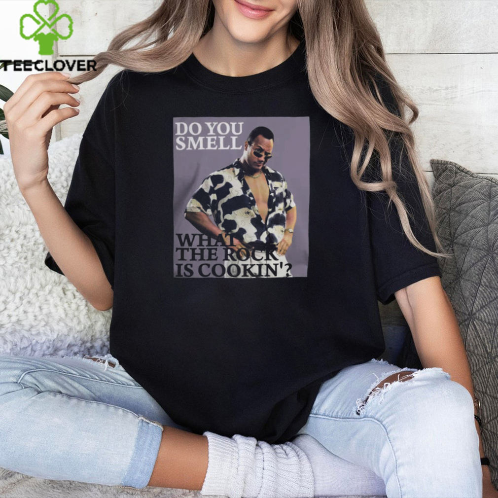 Secondly, this was not a prank. I’ve The Rock Ripple Junction Do You Smell What The Rock is Cookin Portrait Shirt with pre-teen and teenage girls. Nobody cuts all their friend’s hair off as a funny prank. This was an act of bullying designed to humiliate your child. Perhaps she thought that they were her friends, but they are not. I’ve seen other similar cases to this it’s always groups of girls who gang up on another girl. Think about it this would not have been a spur of the moment decision. The other girls likely planned this in advance. Where did the scissors come from? How did they all know to stay awake while your daughter fell asleep? This was definitely pre-meditated.