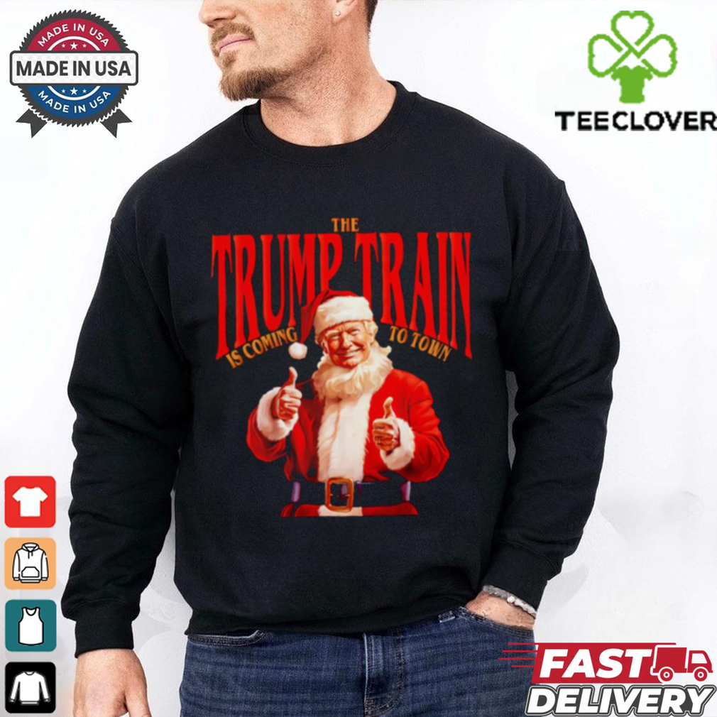 Historic scientists specify the 1st videotaped accident of the The Trump train is coming to town Christmas shirt of the T-shirt to the United States happened during the course of World War One when United States soldiers commentated upon the sunny cotton underwears European soldiers were actually released as conventional outfit. The United States soldiers might certainly not have actually responded as promptly as their soldiers will possess just liked, yet the strongly useful as well as lightweight tee shirt would certainly very soon create its own method back to the conventional American individual.