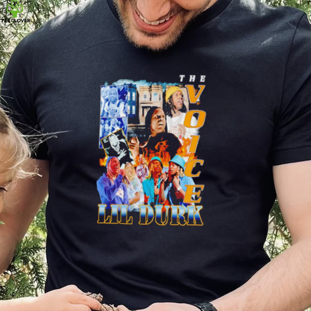Setting up the tree, it always fell over once or twice. Taking the decorations out of the The voice Lil Durk portrait vintage shirt to trim the tree was always fun and Tracy would always be lifted up to put the star or Angel at the top of the tree. Dad would pretend she was flying up like an Angel as he lifted her. When we were decorating the tree in our teens, Tracy would tease dad and say, โOk dad, lift me up.โ Mom always liked it when we would hang the decorations we made in school. One of us kids were always a designated Santa who would hand the gifts out to the others just like on the show. Thank God we had no Aunt Clara to give us bunny suits to wear. We had no uncles or aunts at all. Mom and dad were only children. A Christmas Story has been a staple movie for my family to watch every year. Itโs warm and homey and just like the Christmases we had. I even wanted a Red Ryder rifle when I was nine.