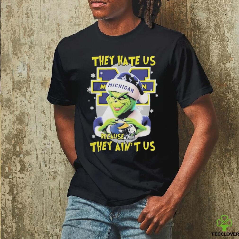 Best They Hate Us Because Ain’t Us The Grinch Hand Love Michigan Wolverines Christmas Shirt