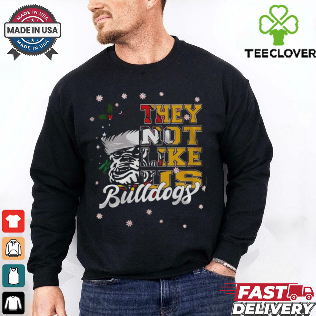 Traditional ready-to-wear / luxury brands generally present at They Hate Us Because They Ain’t Us Georgia Bulldogs Mascot Christmas Shirt weeks around the world including New York, London, Paris, Milan, Seoul, and Tokyo, among others. Buying teams or representatives from stores attend the shows to see the collections. The following week, brands open their showrooms where buyers from the stores come in to see specific pieces in detail and place their orders. If a representative from the store can not attend, it is technically possible to do this all remotely. This happens a minimum of twice a year for Spring/Summer and Fall/Winter collections, but can be much more frequent as pre-collections become increasingly popular. Brands compile the orders from all the stores and spend the next multiple months producing the quantities of pieces ordered.