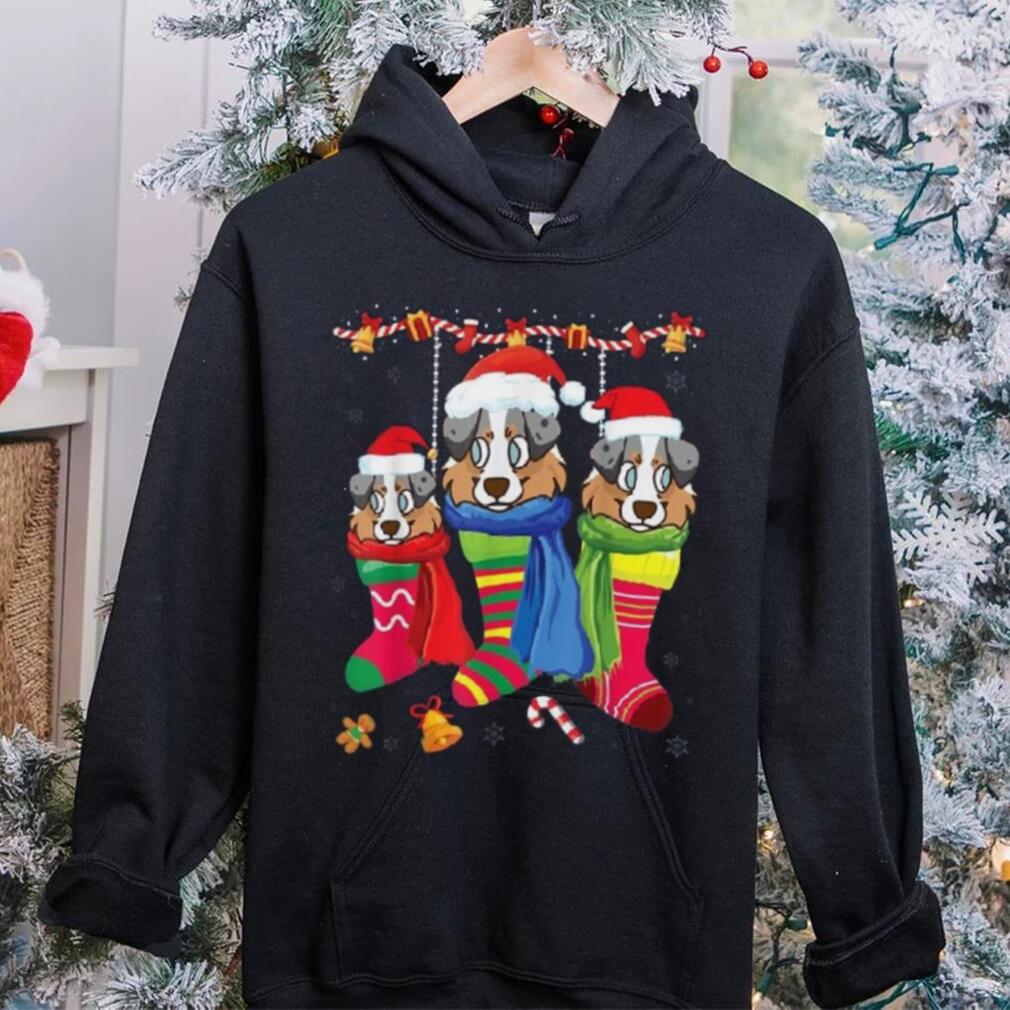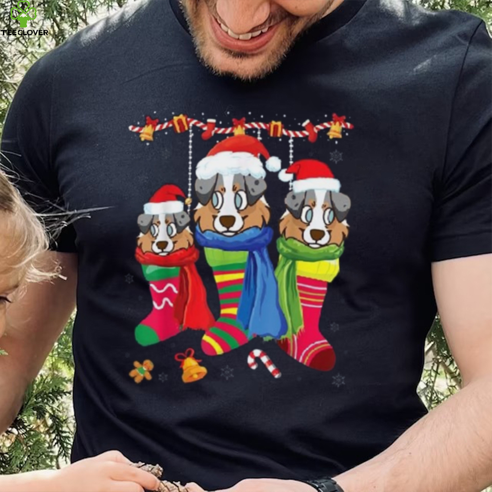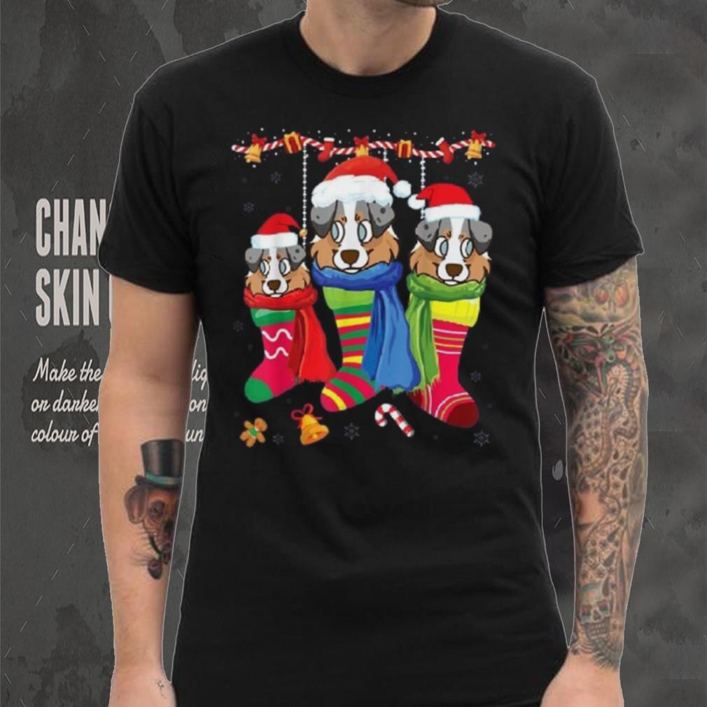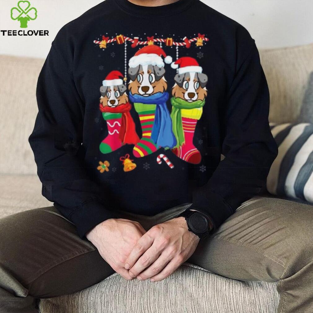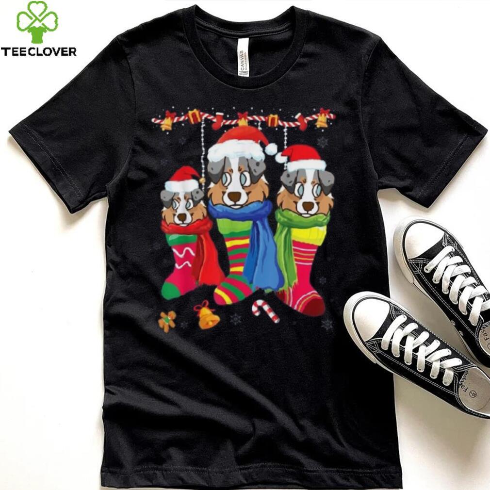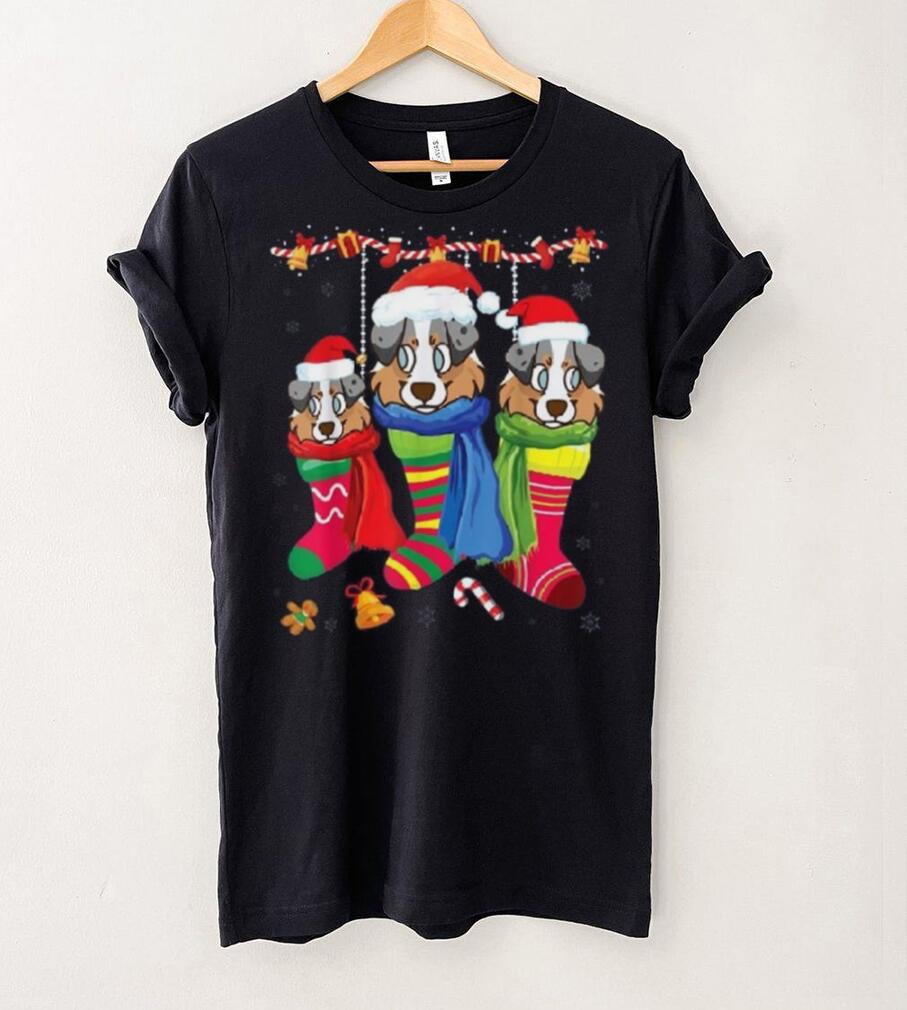 Three English Shepherd Dog Inside Christmas Socks Merry Xmas Unisex Shirt