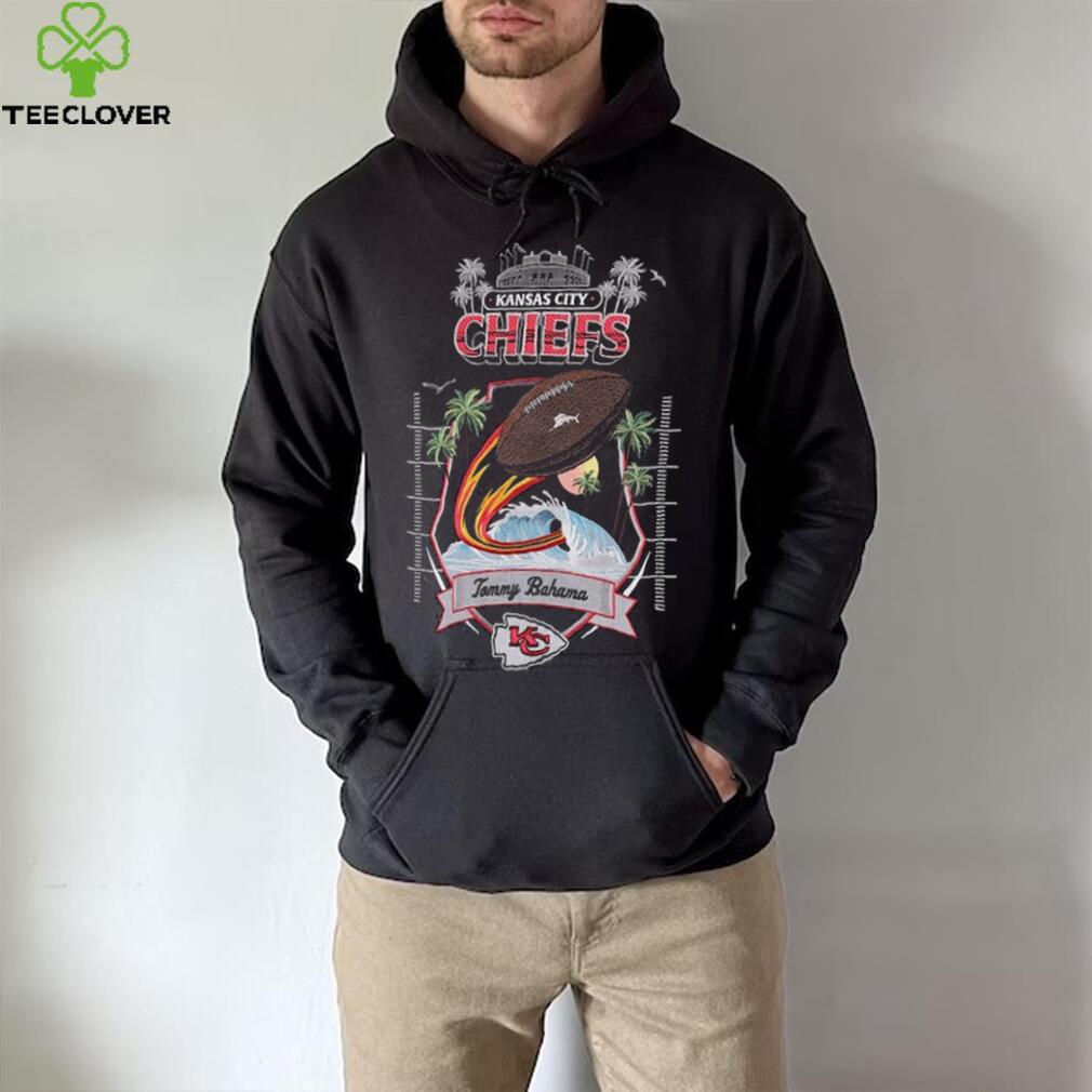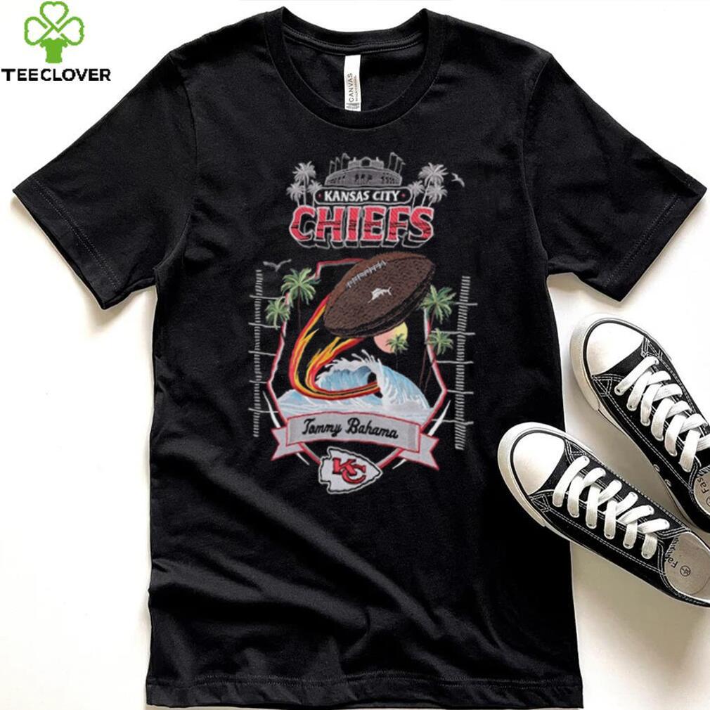 Around 11 AM, the Tommy Bahama Black Kansas City Chiefs Tidal Kickoff Camp Shirt arrived. Several large, police officers approached us. They told us that they were going to shut down the operation as it was causing a huge traffic jam. I got a brainstorm, I asked the officer that appeared to be in charge if I could have a word with him (Note, I was in my hippie mode at this time). He agreed. I said, βThese trees are free to anyone.β He said, βSo whatβ I said βthere are free to anyone, including the police department. You could pick up as many of the trees as you want and take them down to Watts (a very poor part of town) and give them away. Think of the PR you could get out of that.β The lights went on in his head and he turn around and talked to the other officers. I do not know what he said, but in a very short time, there were a lot more officers, but they were now directing traffic. Soon a large truck from the police department pulled up and they starting filling the truck with tress. They were already sending in an advance unit to prepare for the Christmas tree give away.