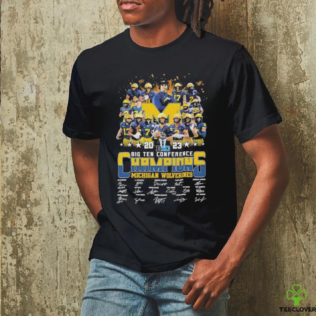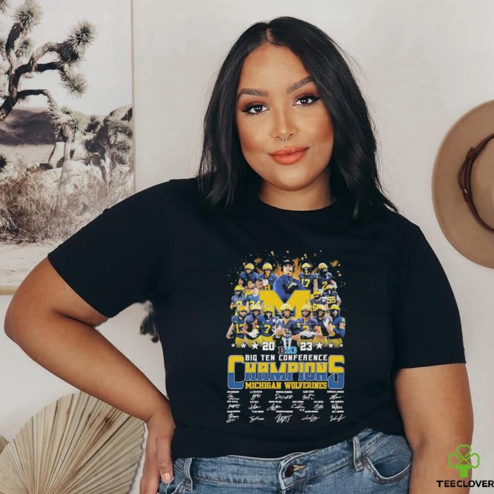 Best Top 2023 BIG ten conference champions Michigan Wolverines all members signatures shirt