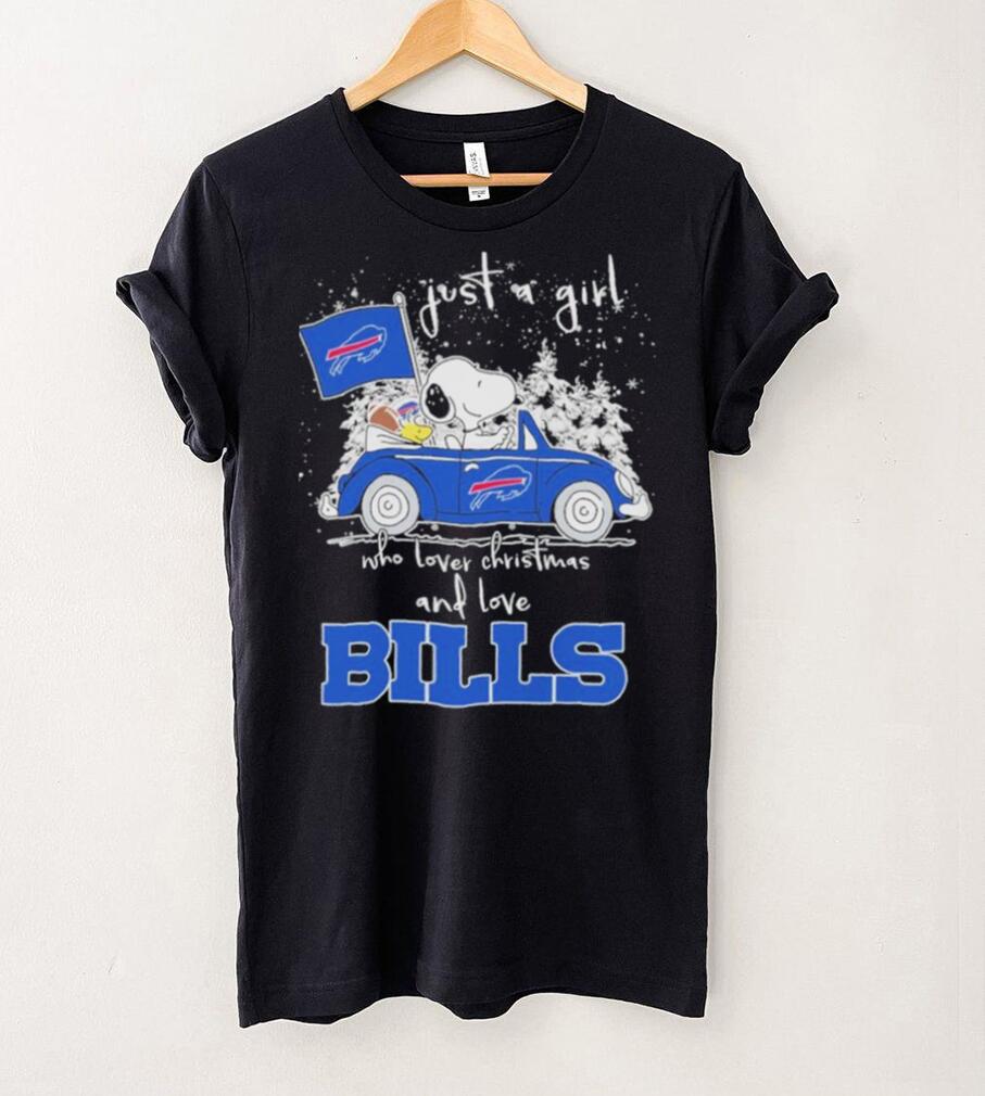 The radio station put out a call for help. We found a Top Just A Girl Who Lover Christmas And Love Bills Shirt, someones front yard, they were going to give them away, but notify the media so everyone would know about it. I made all of the connections, but the truckers were not familiar with that sections of town, so I told them to follow me. It was still raining I had to drive slowly. This was crazy, I was taking a huge truck of Christmas trees to someones home that I did not know. It was around midnight by the time we took off looking for the place. We arrive and the owner of the house had organized the entire neighborhood into helping. Someone made hot chocolate and coffee. Some on had baked some brownies, someone had got several of the neighbors to start contacting all of the media, someone rolled a bunch of joints. Everyone was in a good mood. There were several thousand trees. We left around 3 AM, got a little sleep, and was back there at 8 AM. What a zoo. There were hundreds of people coming to get their free Christmas trees. The newspaper, radio and TV stations were there covering the free Christmas trees. This went on all day and there were still lots of trees left. We returned the next day, there were even bigger crowds. The media was there again. It was a good Christmas feel good story.