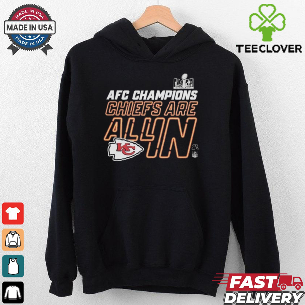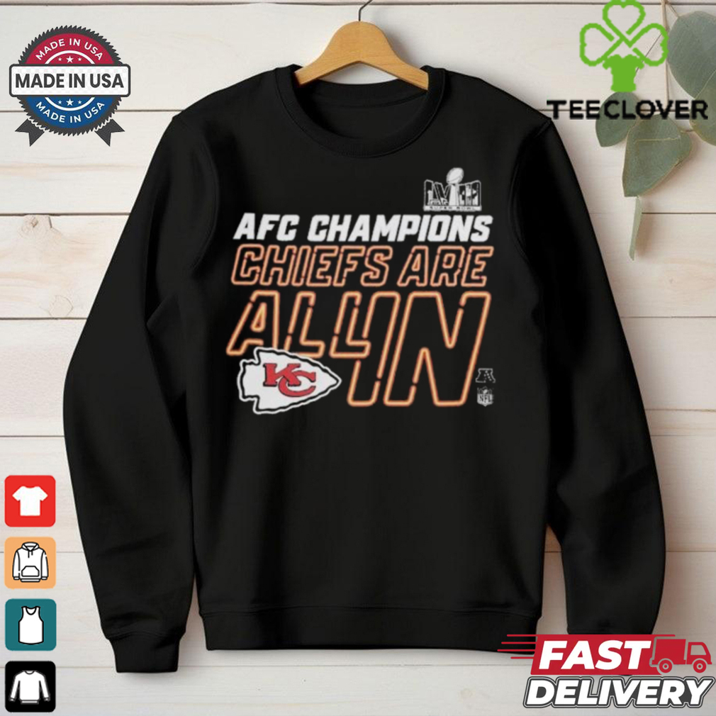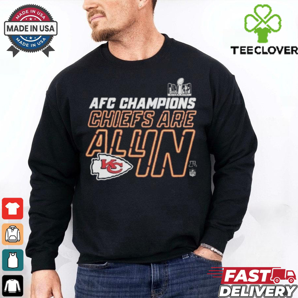 ()Travis Kelce Kansas City Chiefs Are All In AFC Champions Super Bowl LVII NFL T Shirt hoodie, tank top, sweater and long sleeve t-shirt: best style for you