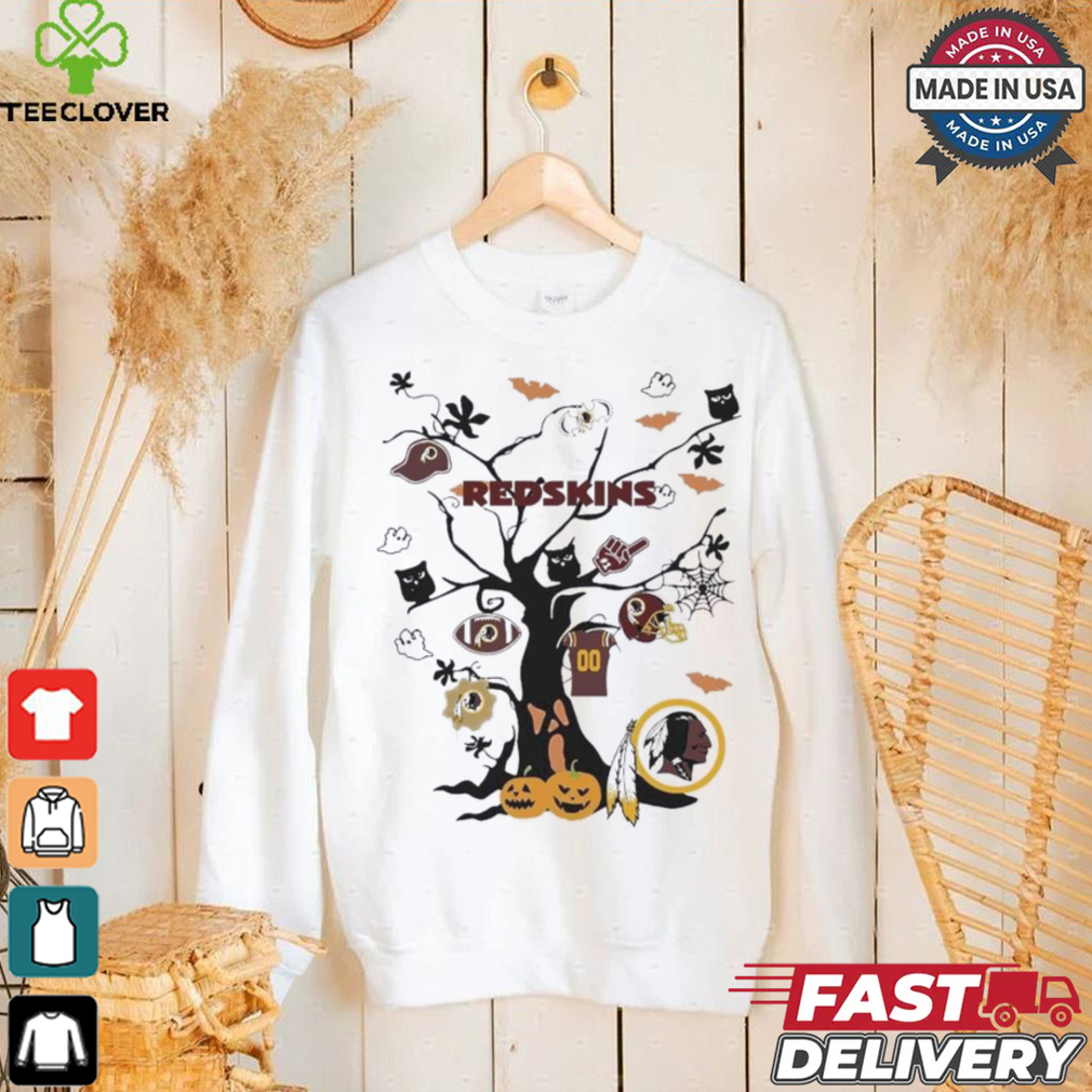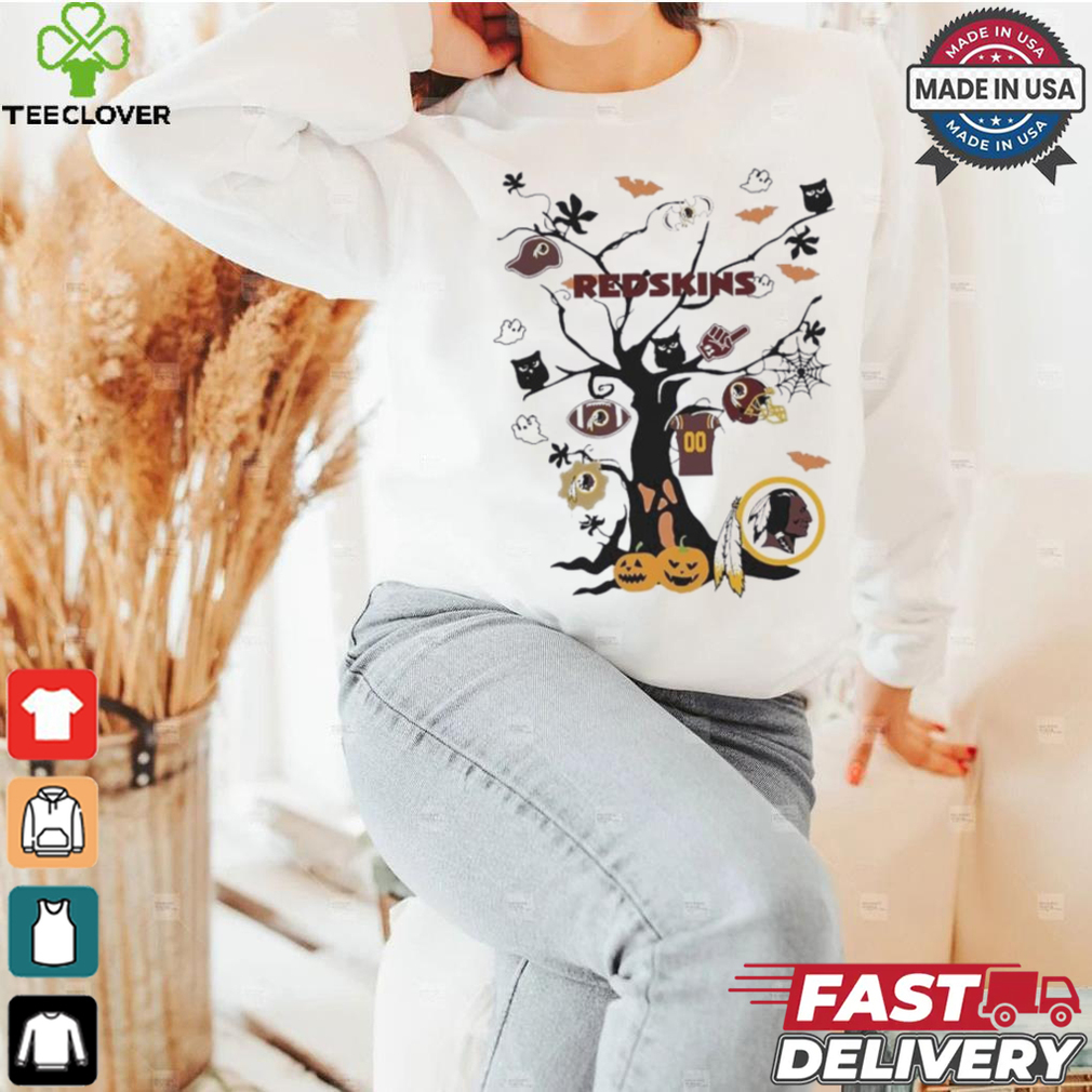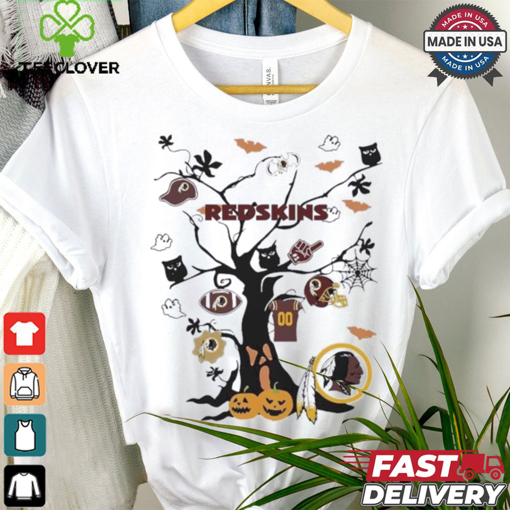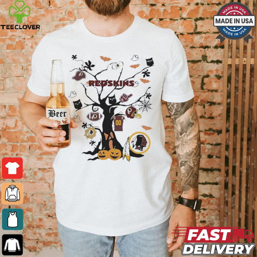 If this question were asked a Tree Halloween Washington Redskins NFL Team 2024 Shirt of weeks later, Iβd probably have photos to show. As it stands, youβll have to put up with my descriptions. We donβt tend to do anything radically different to the rest of the world where Christmas decorations are concerned. Santaβs still wearing a big red suit, there are reindeer, even snowmen and plenty of artificial snow – some of which looks like cobwebs to me, but there you are. We still have Christmas trees covered in tinsel and with stars or angels on the top of them, depending on your preference. Iβve occasionally seen decorations which make a bit of a nod to where we actually are in the world. Santa-on-a-surfboard, kind of an idea. Several years ago, we had a tradition of driving around looking at the Christmas lights other people had put up, and I can definitely recall seeing images of koalas and kangaroos with Santa hats and the like. Overall, though, Christmas decorations tend to look like theyβre from the northern hemisphere, since a lot of our βChristmas cuesβ come from that part of the world, regardless of how warm the day itself may actually be.