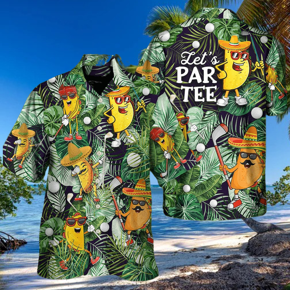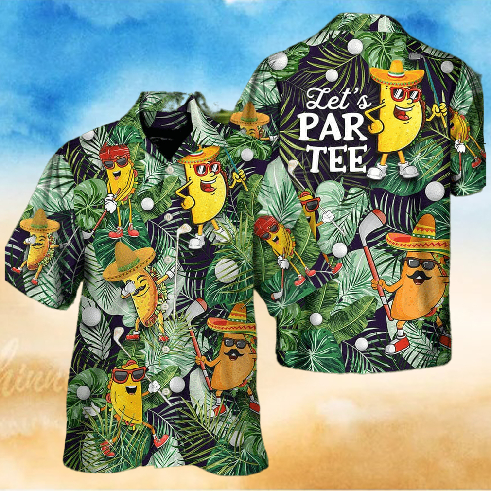 ()Tropical Aloha Funny Taco Playing Golf Let’s Par Tee Palm Leaves Pattern Hawaiian Shirt,