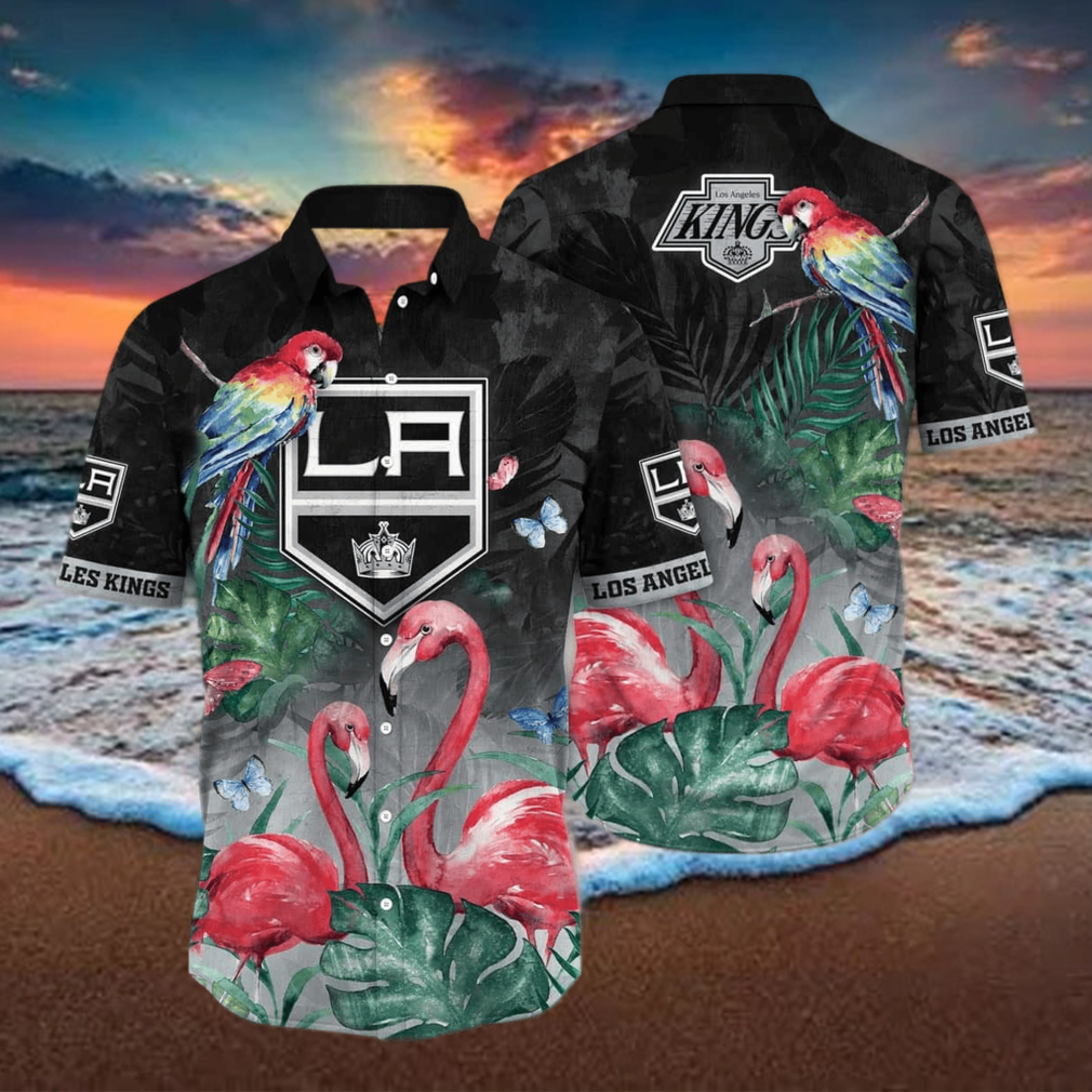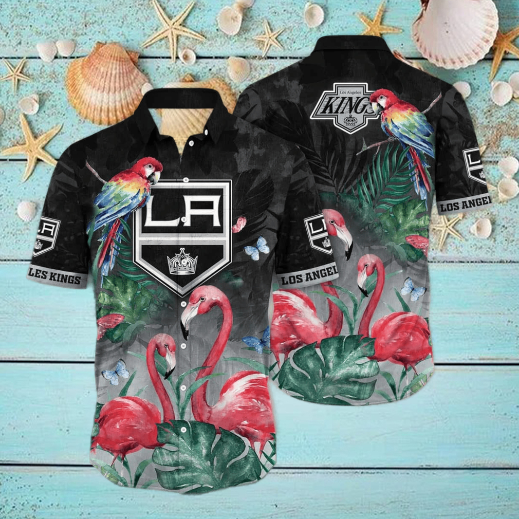 ()Tropical Aloha NHL Los Angeles Kings Hawaiian Shirt Pink Flamingo And Palm Leaves hawaiian shirt,