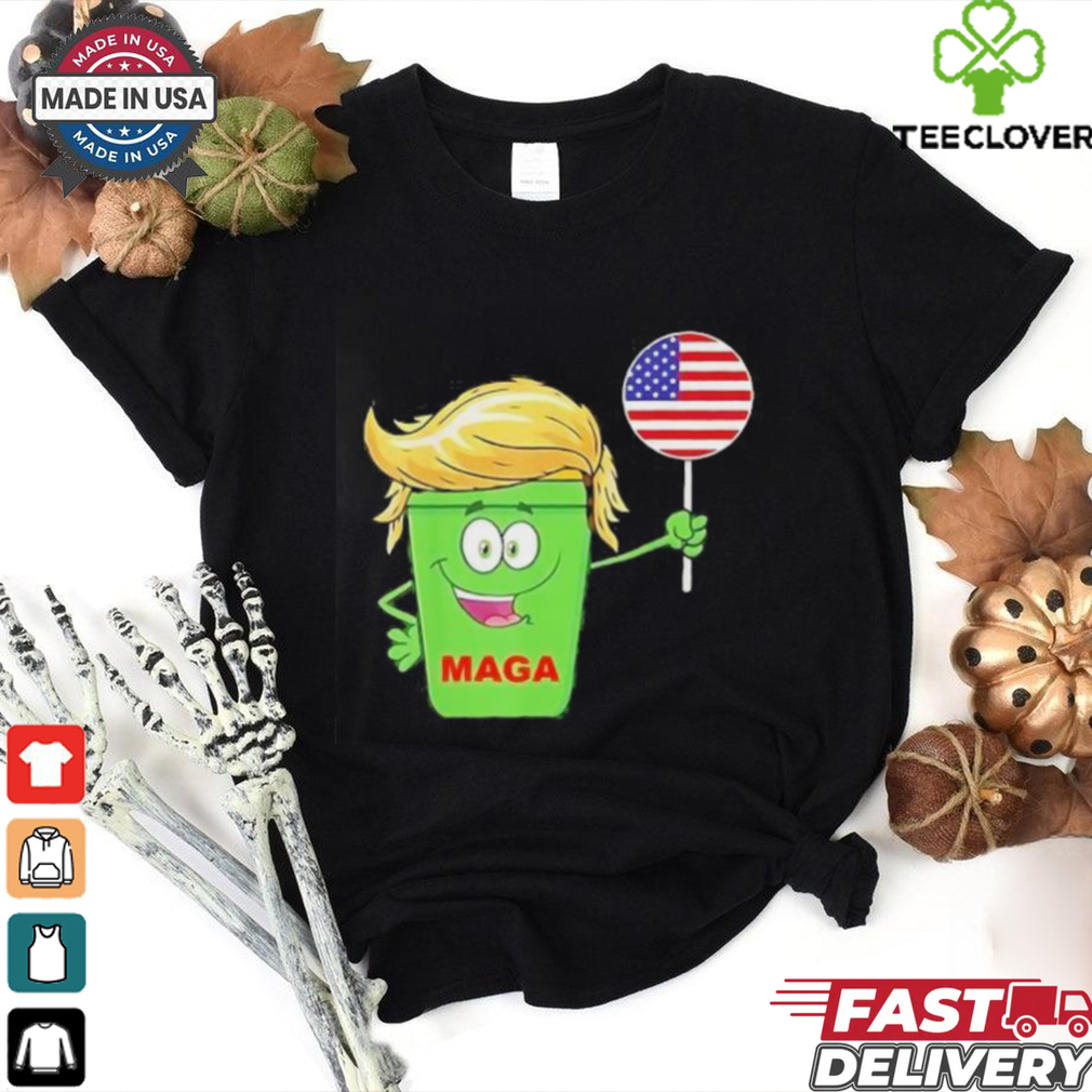 ()At the quite starting the tee was actually little bit even more than a part of Trump MAGA Cartoon Garbage Can American Flag shirt garments, a remarkably pragmatic one at that. The concepts piรจce de rรฉsistance included a fall cover in the spine for convenience of make use of in the outdated privy. As cotton ended up being much more as well as much more extensively readily available, undergarments producers took the second to make an option to this pillar and also somewhat troublesome layout.