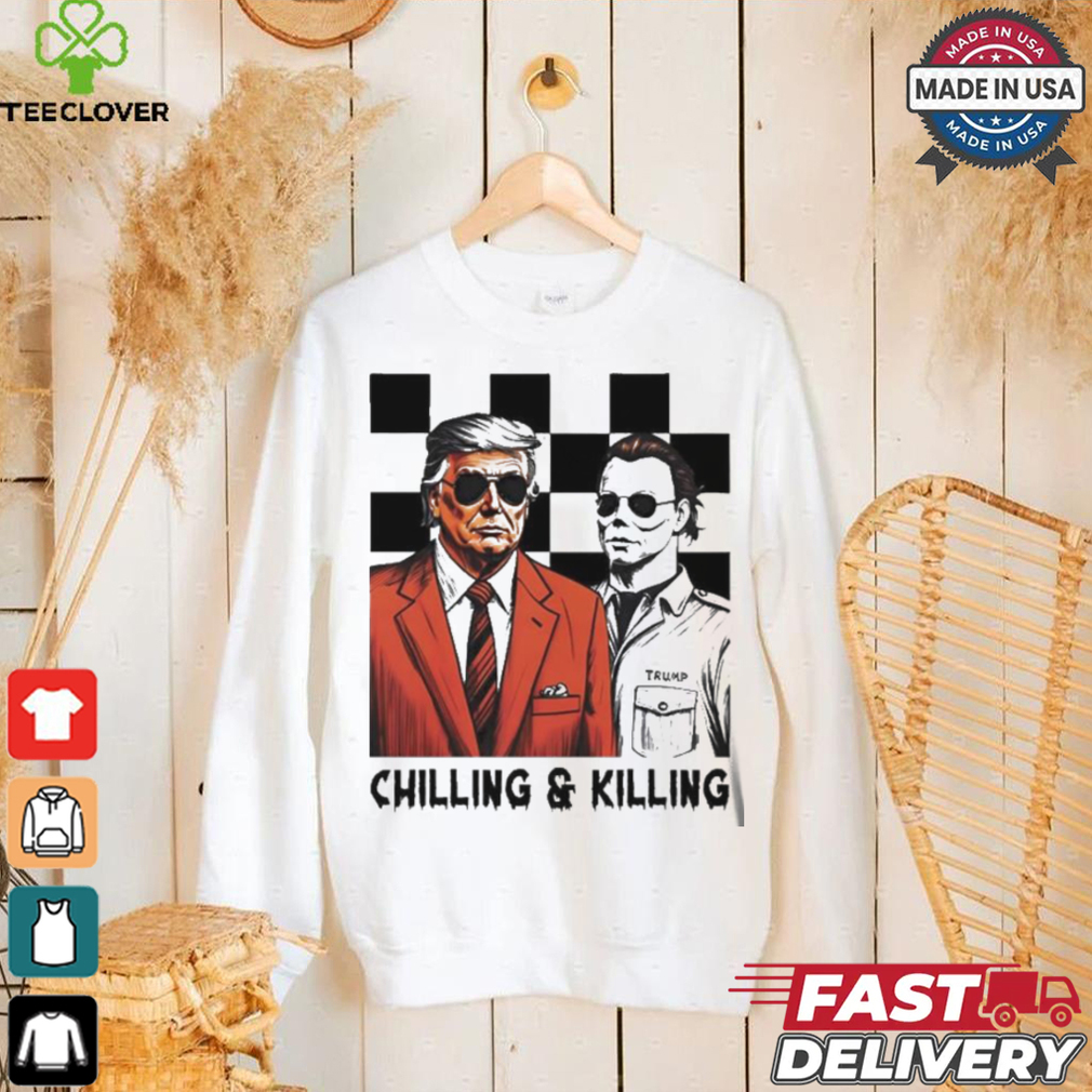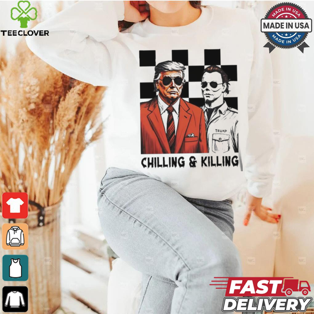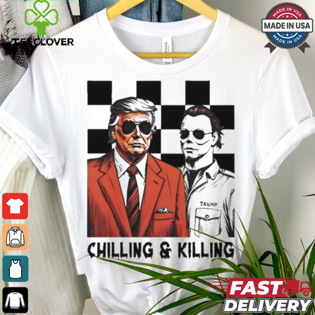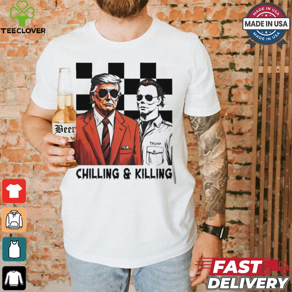 Union Square offers soft Christmas Carols in the Trump Michael Myers Chilling And Killing Shirt a Twenty feet tall, lavishly decorated tree with lights as a center piece in the square. This is surrounded by an Ice Skating Rink which is available seasonally. The Union Squarw Park Plaza is centered in the shopping area bordering Maiden Lane, an exclusively designer brand store lined roadway. Other shops and department stores such as Saks Fith Avenue, Tiffany’s, Nike Town, Apple, Nieman Marcus, Louis Vuitton, Macy’s, Swarvoski Crystal, and many others. Another attraction is the historical Westin st. Francis Grand Hotel which is directly across from the Powell side of the square. You might want to check out the Sony Metreon center at the corner of Forth and Mission. There is a park and plaza area behind the center for rekaxing and people watching. It also shares the block with the Moscone center. City Hall, located at the Civic Center also features a pretty lavish Christmas exibit. Hope this helps.