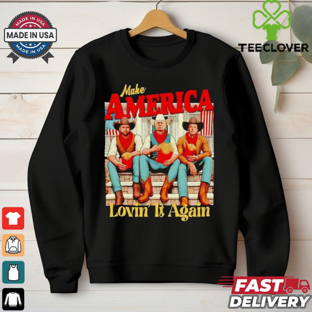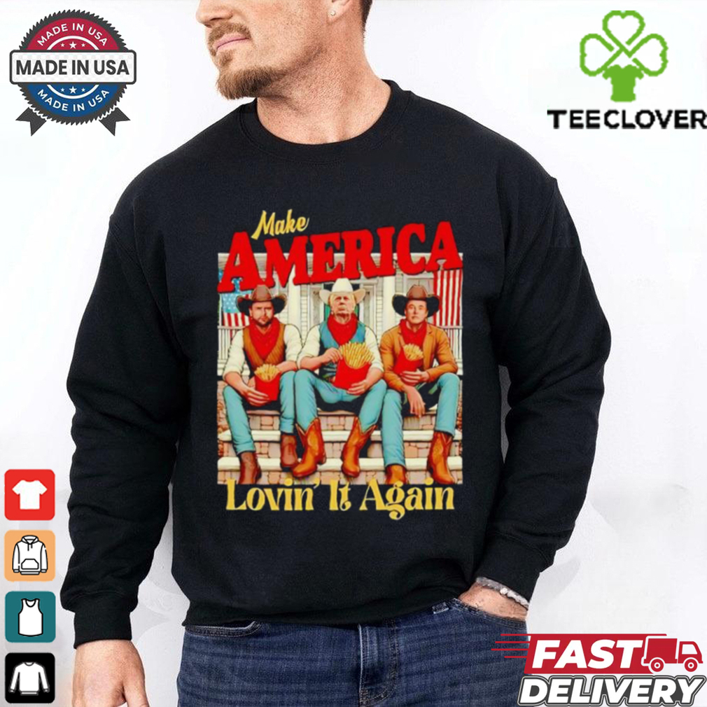 ()Trump Vance Elon fries make America lovin’ it again shirt hoodie, tank top, sweater and long sleeve t-shirt: best style for you