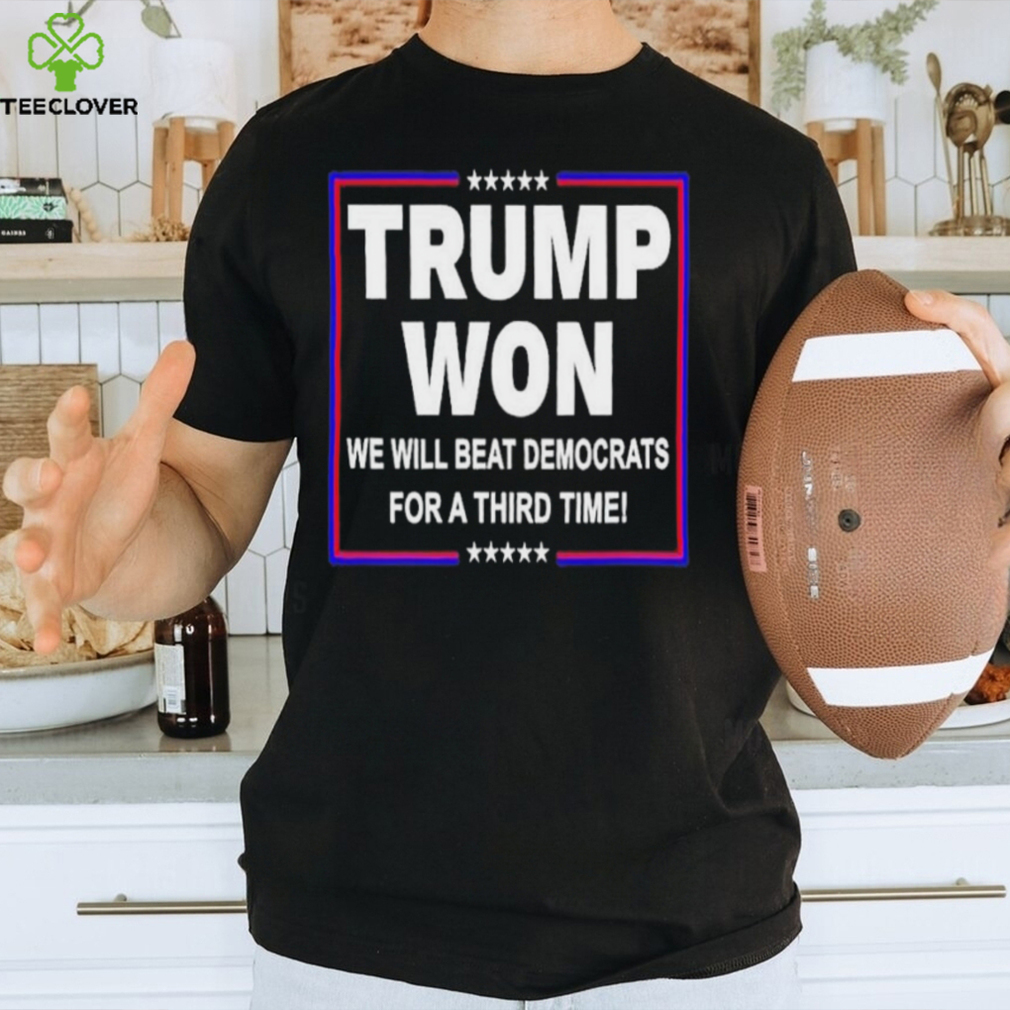 ()Trump won we will beat Democrats for a third time shirt, Hoodie, Sweater, Vneck, Unisex and T-shirt