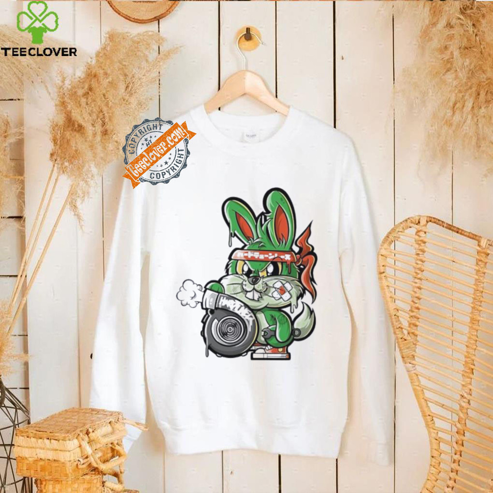 Rugby is a lot more fluid. There is a squad of around 50 in a fully pro club, but only 23 in a match day squad. About 30 players at a club are regular performers in the โfirst team” squad, whilst the other 20 are developing players or reserves who step in as injury cover. The second tier of English Rugby Union is a mixture of professional and semi-professional players, the 3rd tier is mainly semi-pro. Younger players from the first tier sides are routinely sent out on loan to second and third tier clubs to gain experience. This can work the other way as well โ recently an injury crisis in a specialised position (tighthead prop) at my local top flight side led to a semi-pro player who works as a Turbo bunny street style graphic shirt from a 3rd tier club being borrowed on loan. One minute he’s teaching kids, the next he’s running out infront of 15,000 supporters alongside international players being paid over $500,000 a year.