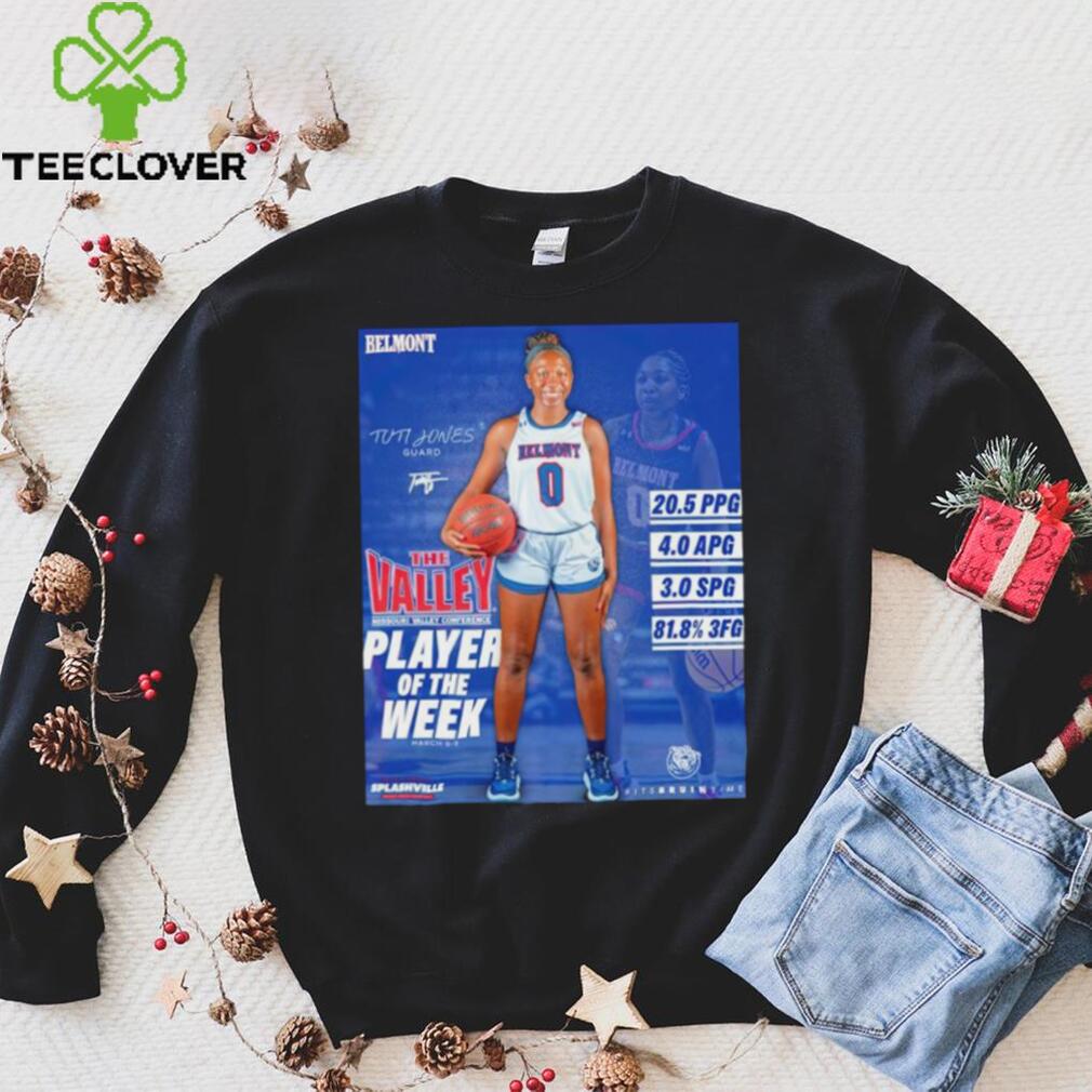 Geography. Pick the local team. If you are in say Miami, congratulations you can be a Dolphins fan and if you want to support teams across several levels, then the Dolphins for the NFL, Miami Hurricane among the power college programs and Florida International Panthers in the so-called Group of 5. If you are in an area not near an NFL team pick a Tuti Jones The Valley player of the week shirt college and could even find enjoyment following a small regional team that plays in Division II or III or Division I FCS. Aesthetic reasons. You like the dark blue and orange combo of the Denver Broncos then that can be your team (also opens up the Boise State Broncos in college football). Iโm a Denver Broncos fan and Kansas City is a Tuti Jones The Valley player of the week shirtย rival but I have to admit I like their home uniform. Like red and black? That gives you the Atlanta Falcons in the NFL, Texas Tech and Arkansas State and Cincinnati just off the top of my head. I donโt like the University of Texas but I happen to think their road uniform is one of the best in college football.