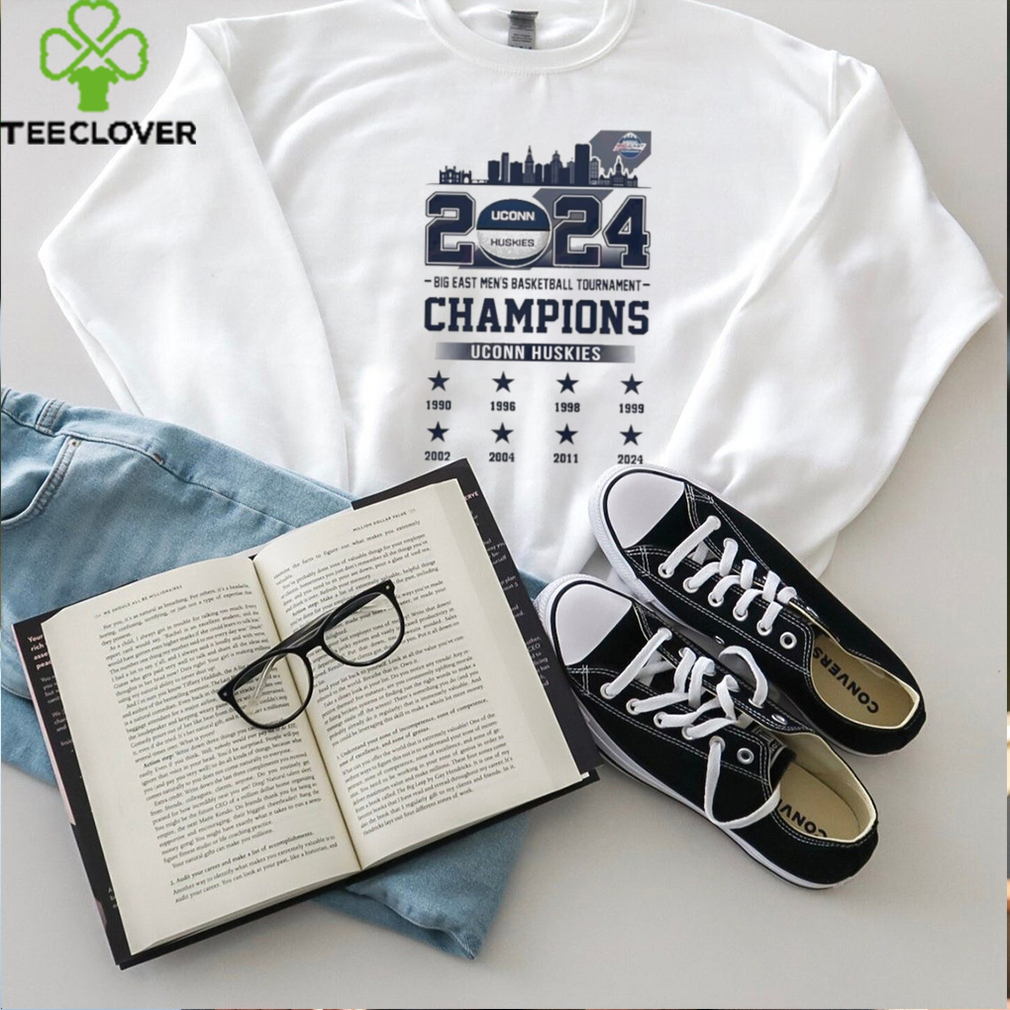 So now I live with a dog. I Uconn Huskies 2024 Big east men’s basketball tournament champions shirt a need to nurture, suffered from Empty Nest Syndrome terribly, all my friends had dogs and he was the cutest, fluffiest little puppy I ever saw. He is my baby. He travels very well, which is good since our family is all over the US. His needs are love me, food, toys, has to go out to potty several times a day, rain or shine.