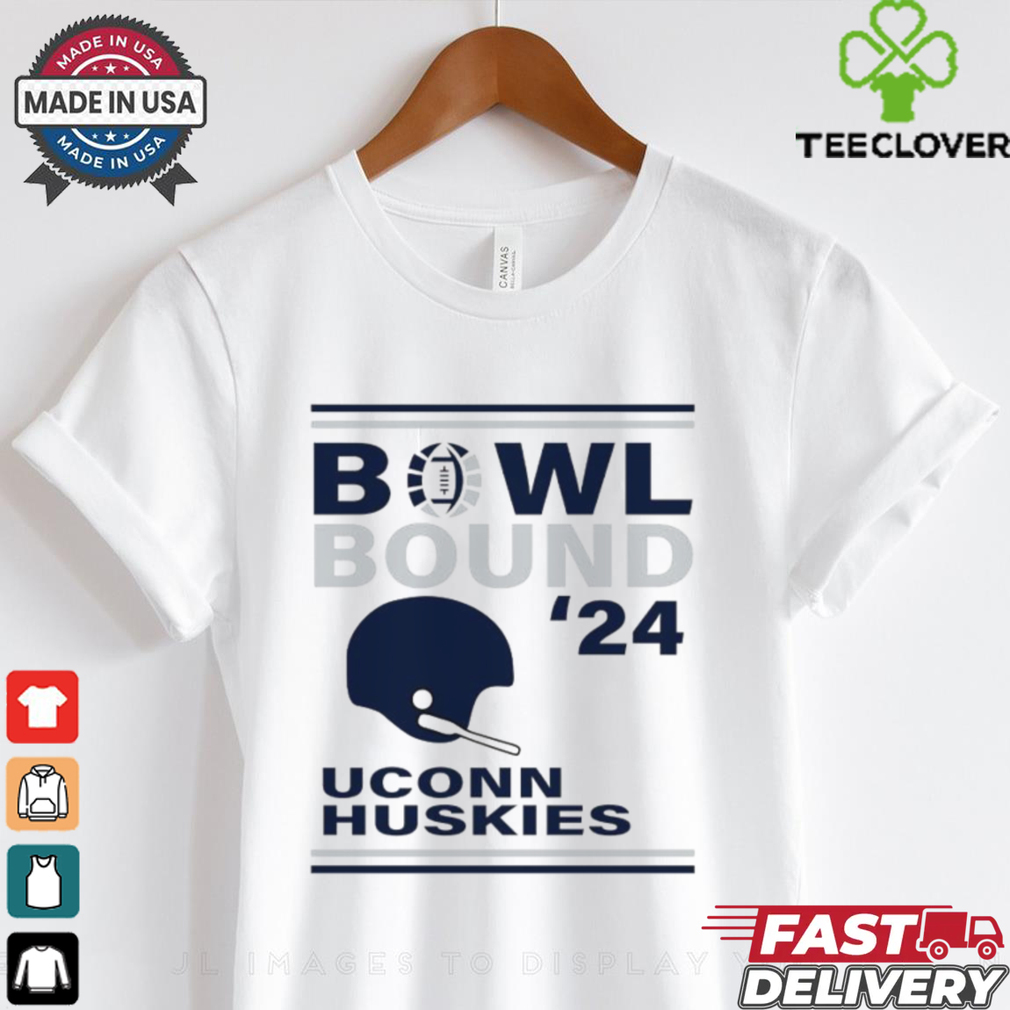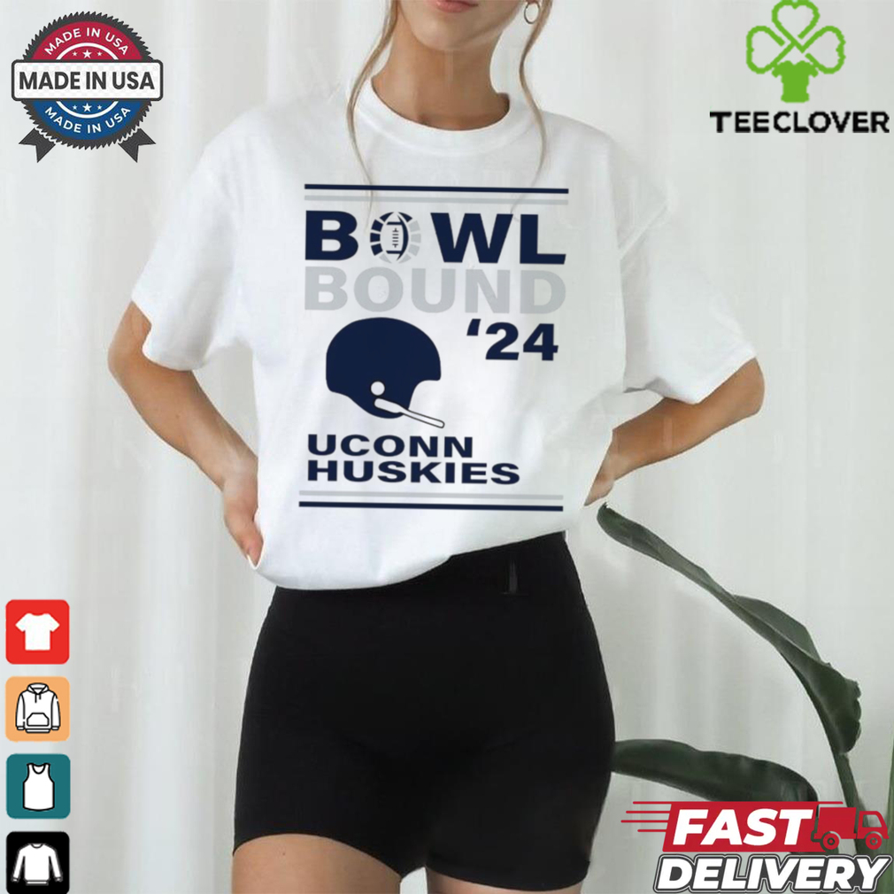 Their smooth, seamless cups look UConn Huskies Bowl Bound 2024 Shirt under tight-fitting clothing making them the perfect choice for fitted sweaters and bodycon dresses. Unlike unlined bras, t-shirt bras and contour bras create a symmetrical, rounded breast shape.Women with asymmetrical boobs sometimes opt for push-up t-shirt bras with removable padding so they can customize the fit for a more symmetrical look. To get the best fit, choose a t-shirt bra with a snug band and cups that completely contain your breast tissue.