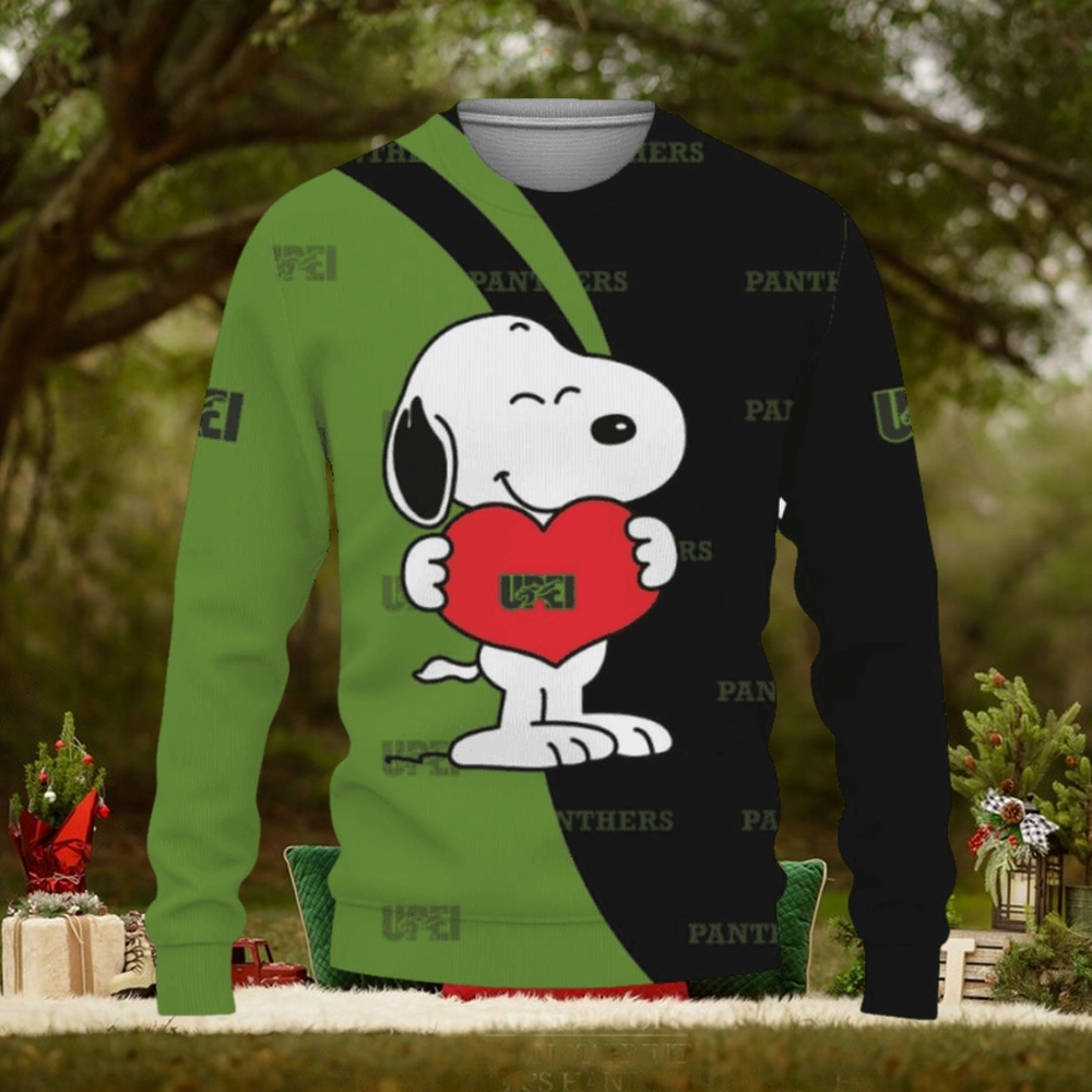 Best UPEI Panthers Snoopy Cute Heart American Sports Team Ugly Xmas Sweater Gift Holidays