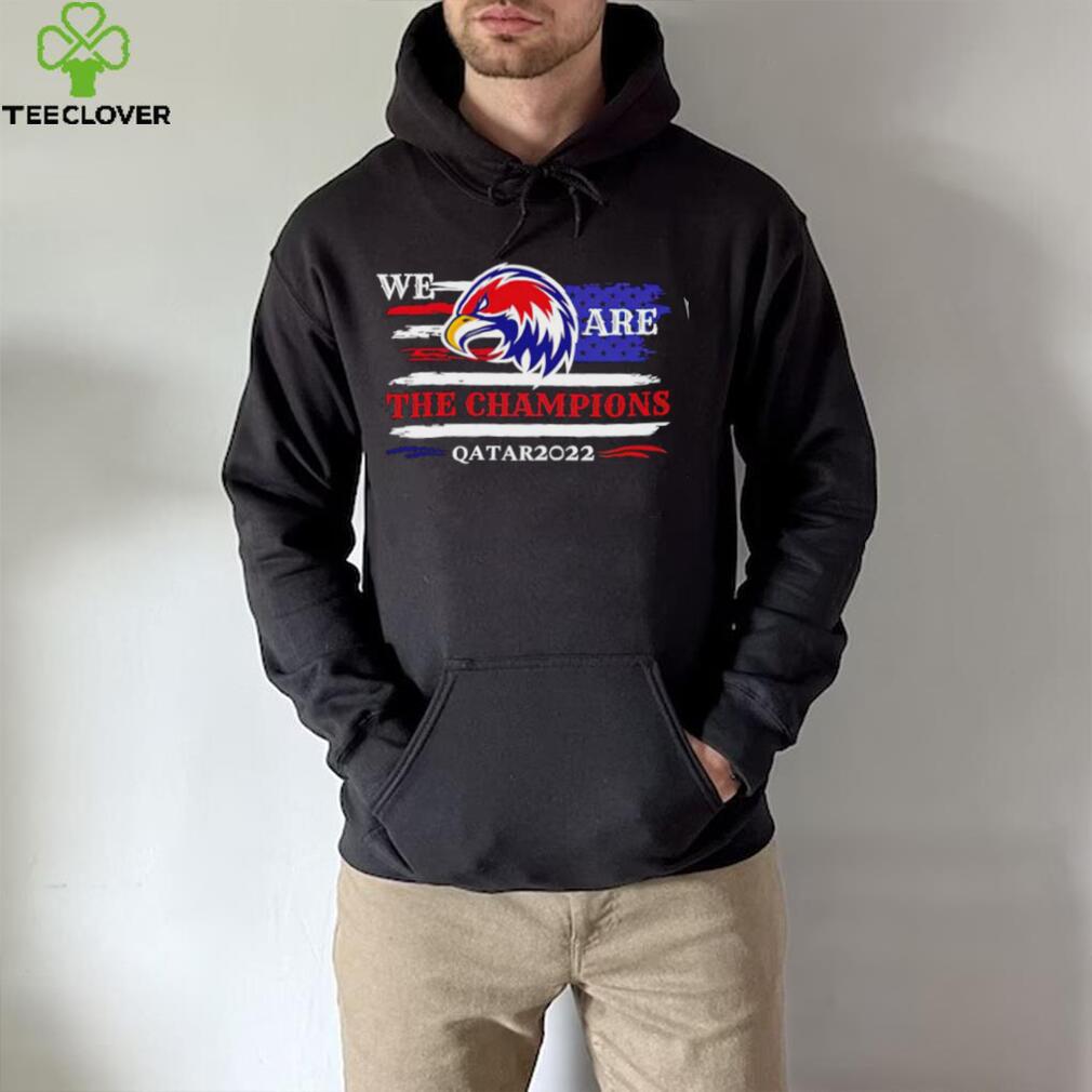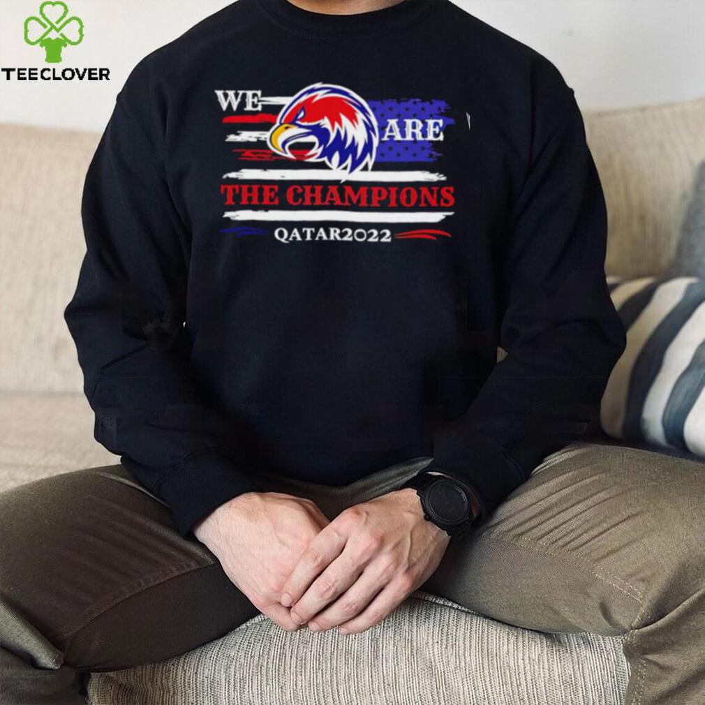 Vick established himself in Atlanta. It was the scene of his meteoric rise to stardom and his eventual fall from grace. The Falcons were a perennial cellar dweller until Vick arrived on the scene in 2001. In fact, the franchise had never posted back-to-back winning seasons. That all changed soon after Vick came to town. Suddenly, the Falcons were legitimate contenders and boasted the most exciting player in the USA Football we are the Champions Qatar 2022 American flag shirt. A human high light reel, Vick dazzled the masses and frustrated defenses with his dynamic play making ability. It was Atlanta where the legend of Michael Vick, NFL superstar began.