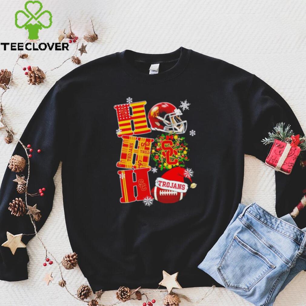 As someone who usually doesn’t get gifts and has a hard time getting and USC Trojans NCAA ho ho ho Christmas shirt receiving them and finding what I want, it helps when there’s is secret santa stuff. So I helped out by participating and got picked to give a gift to this nice girl I knew. On the day of gift giving, as it was a surprise, I tapped her on the shoulder as she turned around, putting the gift in her hand in a smooth motion. It was one of the things on her wish list. Stunned in a good way, she said โthank you!โ After saying my name. A minute later, a person I didn’t know as well, gave me a gift. I’ve never really celebrated it outside my family, and didn’t think I would get one. It was neat, and a very nice surprise, as we didn’t associate much with each other. I thanked her, and then again more than twenty minutes later as class ended. But the kicker: it was lunch time, and I was going to the bathroom, as per usual. Then this other person I know, a lot better, and am better pals with but don’t always get to hang out, but find much in common, called me over. I waited patiently to see what it was all about. We never really hung out at lunch, and last time she had asked me a question, so I had answered her. Our relationship wasn’t bad.