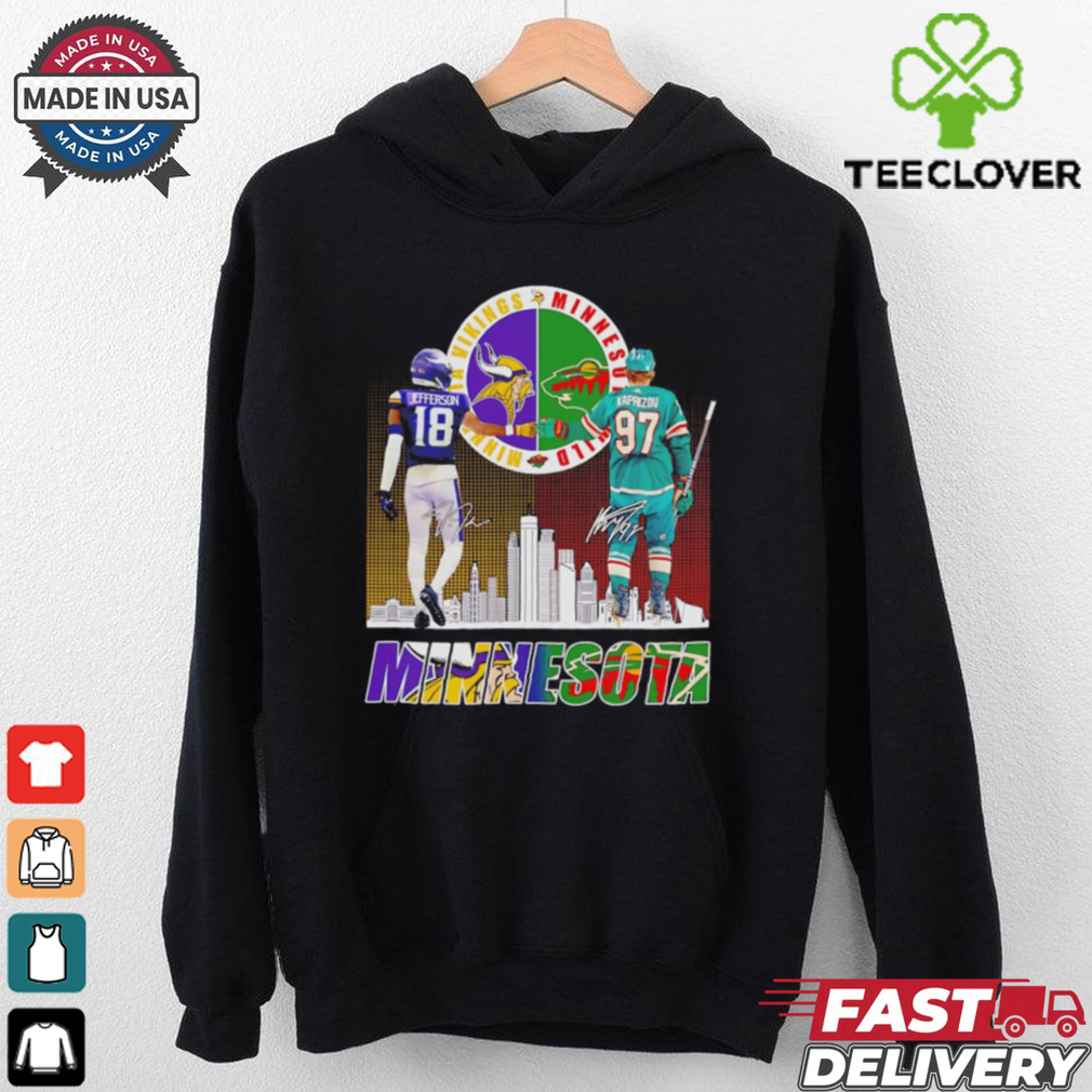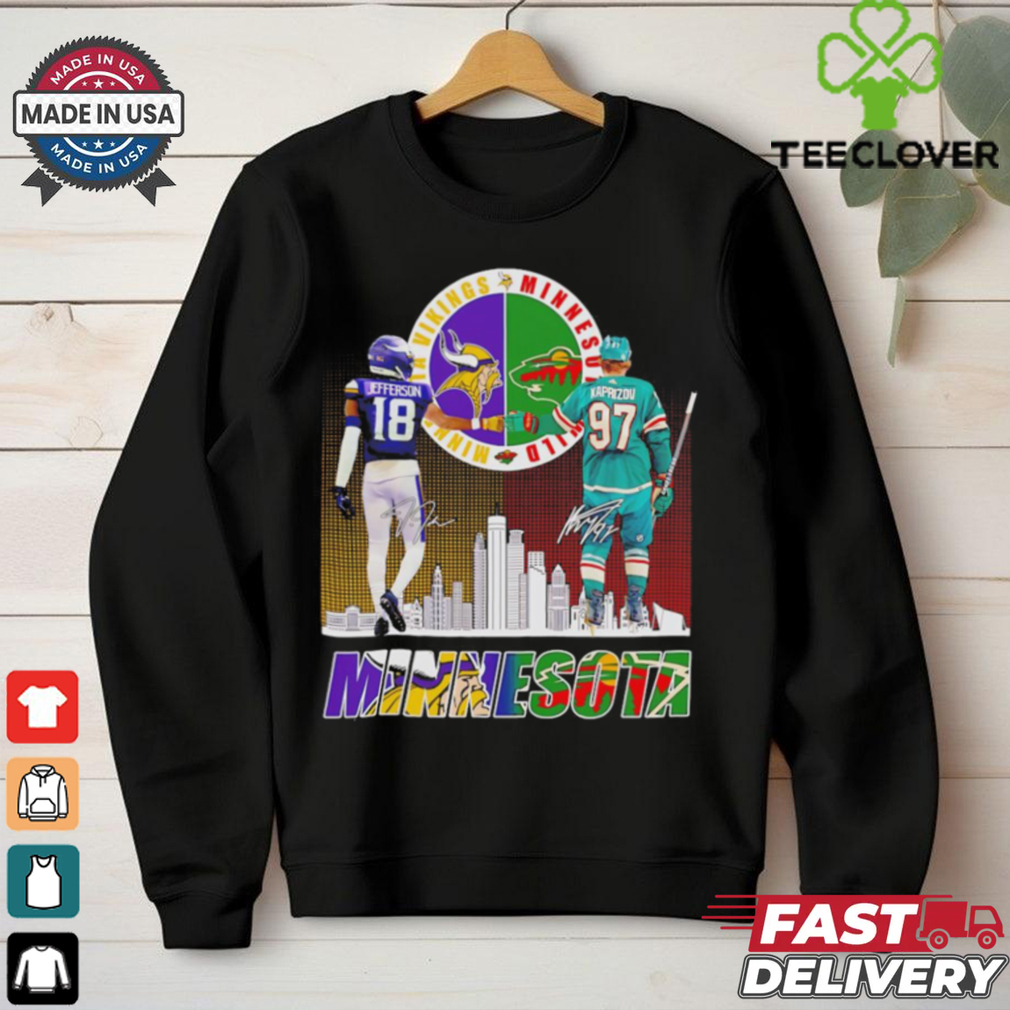 ()Vikings Justin Jefferson x Wild Kirill Kaprizov Minnesota skyline shirt hoodie, tank top, sweater and long sleeve t-shirt: best style for you