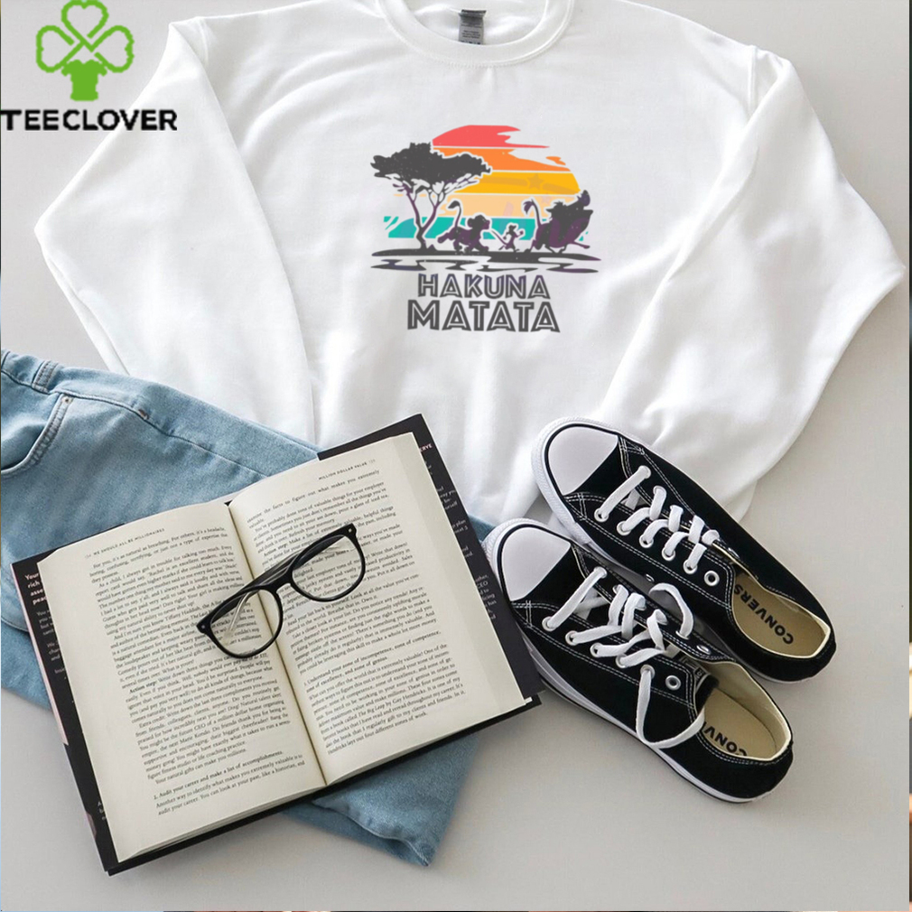 (The Bolshevik) sentinel slowly raised his head. But just at this moment the Vintage Disney Hakuna Matata Lion King shirt body of my friend rose up and blanketed the fire from me and in a twinkling the feet of the sentinel flashed through the air, as my companion had seized him by the throat and swung him clear into the bushes, where both figures disappeared. In a second he re-appeared, flourished the rifle of the Partisan over his head and I heard the dull blow which was followed by an absolute calm. He came back toward me and, confusedly smiling, said: “It is done. God and the Devil! When I was a boy, my mother wanted to make a priest out of me. When I grew up, I became a trained agronome in order. . . to strangle the people and smash their skulls? Revolution is a very stupid thing!” And with anger and disgust he spit and began to smoke his pipe.