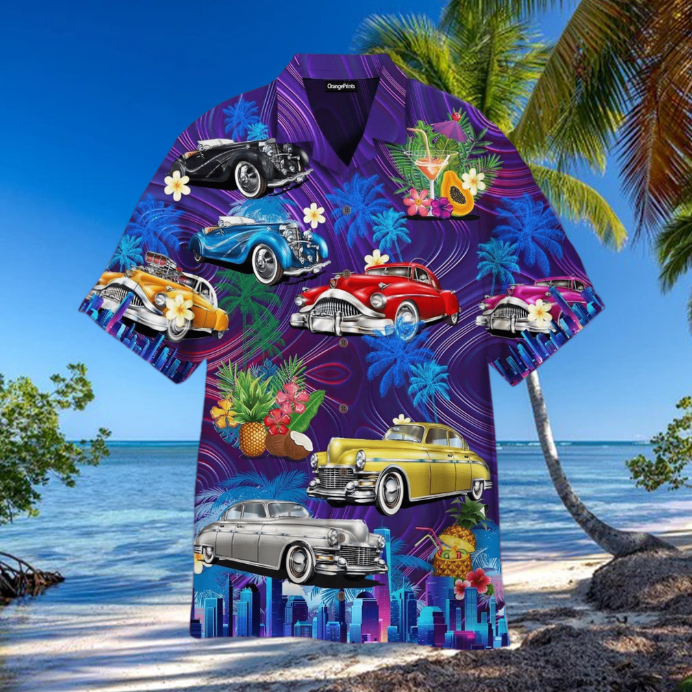 Best Vintage Hot Rod Car Sunset Beach Hawaiian Shirt For