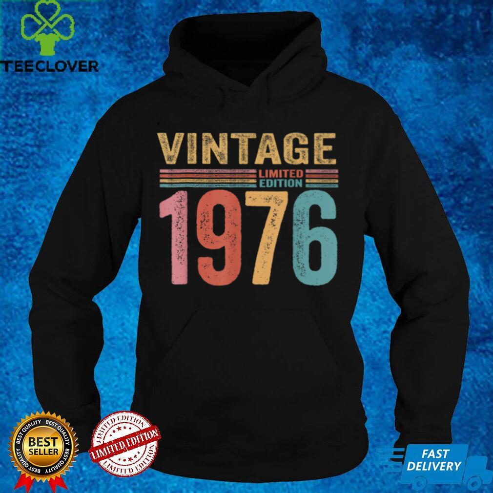 Or both. Not necessarily in that order. Dirty kiwi does good on his word and he prepares a Vintage Limited Edition 1976 46 Year Old Birthday Gifts T Shirt B09VWXNDY1 of choco pancakes next morning. He confesses his house only has cold water, which means he only takes a shower once a week (hence: dirty kiwi), but not to worry since he “made sure to take a shower” before I came. I’m in disbelief this is happening, it is ALL too bizarre, and as I’m about to leave, post-breakfast, he grabs me and says “I want to share you something”. I’m sure he is about to show me the hidden compartment where he keeps all his victims when he grabs a set of keys and stands in front of an impressingly big utility shed in the backyard. My jaw drops when he opens the door to uncover a homemade greenhouse, completely filled with the tallest, most abundant plants of cannabis you could ever imagine. He smiles lazily at me as he realizes I am trying to count the plants, to no success.