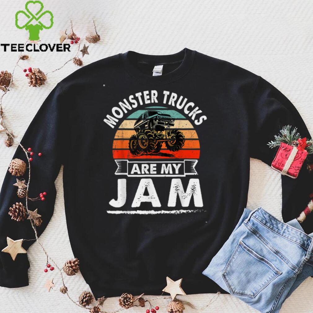 (Vintage Monster Truck Are My Jam Retro Sunset Cool Engines T Shirt, Hoodie, Sweater, Vneck, Unisex and T-shirt)If we are to have a world that is safe and Vintage Monster Truck Are My Jam Retro Sunset Cool Engines T Shirt for all, we will need to recognize and respect the way that others experience life and not just the way we do. Despite popular objections to caring policies and practices that emerge from progressive public policies, educational policies, and modern culture, I see a great deal of narcissism in our consumer culture and the nearly anonymous way that many people glide through life, adopting and rejecting fashion trends on cue, following college prep plans modeled after what everyone is doing rather than being based on the goals and needs of individual students, and following the same television shows, social media influence campaigns, and tweeted slogans supported by little or no fact.