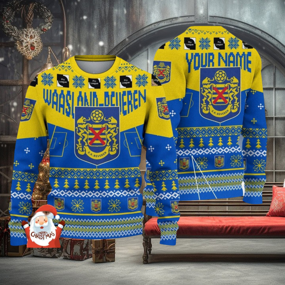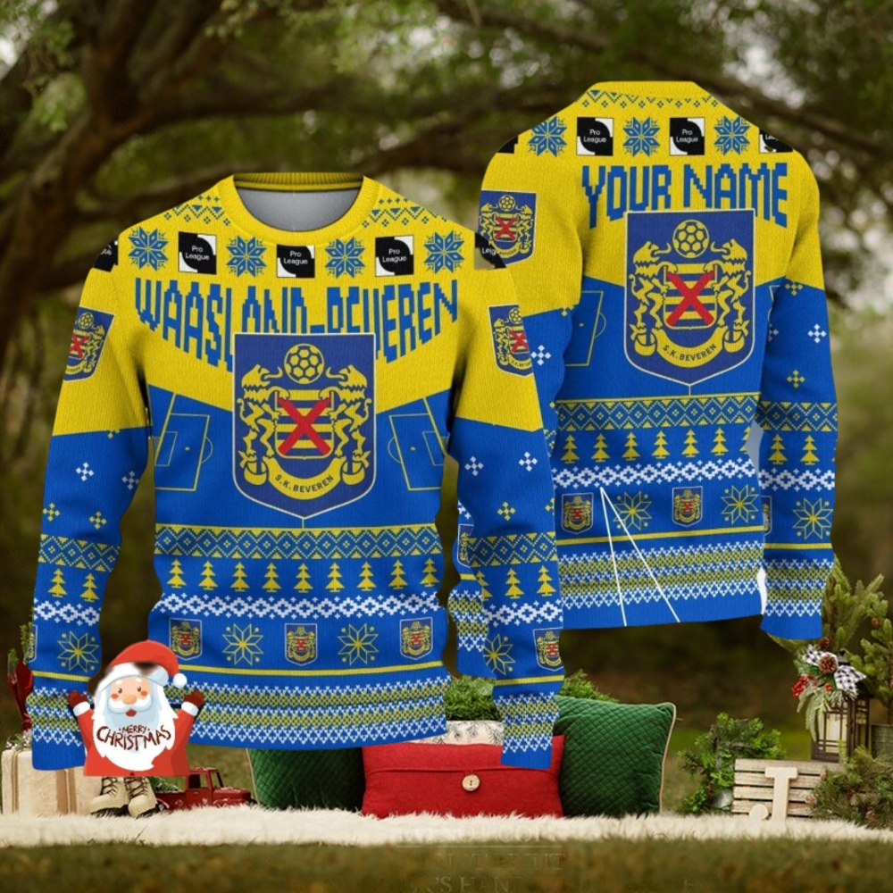()Waasland Beveren 3D Ugly Christmas Sweater Christmas Holiday Gift Custom Name For Men And Women,