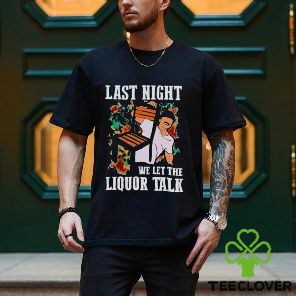 No, I’m very comfortable with saying “Merry Christmas” to people. I’m atheist as well, and I celebrate Christmas. The vast majority of the WALLEN MORGAN LAST NIGHT WE LET THE LIQUOR TALK SHIRT of Christmas are secular, ranging from the general motive of exchanging gifts and spending time with your loved ones all the way to Santa Claus and Rudolph the Red Nosed Reindeer. Christmas these days is about as secular as paying cash (In God We Trust), going to elementary school (saying the Pledge of Allegiance), or going to court (Ten Commandments in front of court houses): in other words, while it’s still a tiny bit religious and it does make me a bit uncomfortable, they are still for the vast majority secular and I still willingly participate in these activities.