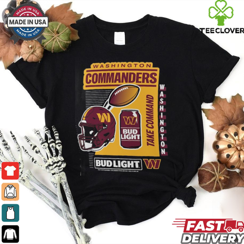 Much more as well as a lot Washington Commanders Black Bud Light Logo T Shirt well-known T-shirts were actually tailored and also produced throughout the Psychedelic period, consisting of even more as well as extra home-made practices. Band T-shirts came to be an additional exceptionally well-known type of T t-shirt, inexpensively published as well as marketed at real-time jobs as well as gigs of the time, the practice proceeds to the current, band T shirts are actually as well-known as ever before, nonetheless the rate of all of them has actually increased considerably.