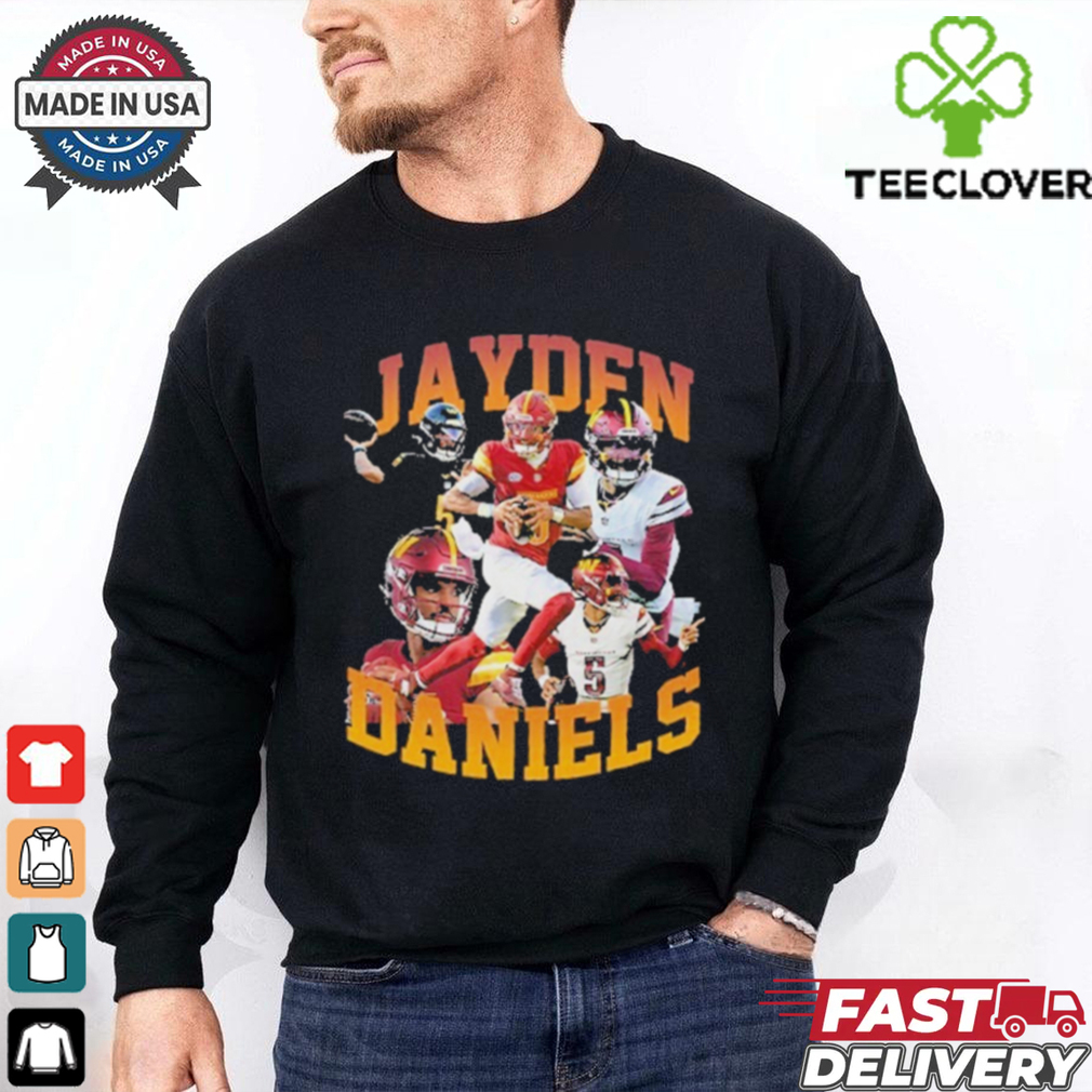 What’s more to the question isn’t whether he is Washington Commanders Jayden Daniels T shirts but more how underrated his teammates are and were. I mean, when we stop for a second and realize the talent he has been surrounded by since Miami, it kinda baffles me that any of those teams ever lost a game, never mind a seven game series to, well, anybody.Lebron is a great player, but I am more impressed with Tim Duncan and Spurs defeating a Super Team in Miami and I’m still wrapping my head around how Dirk’s Mavs beat them as well. Because the Heat were it man, they never should have lost. Ever. I mean, Ray Allen, was the fourth option.