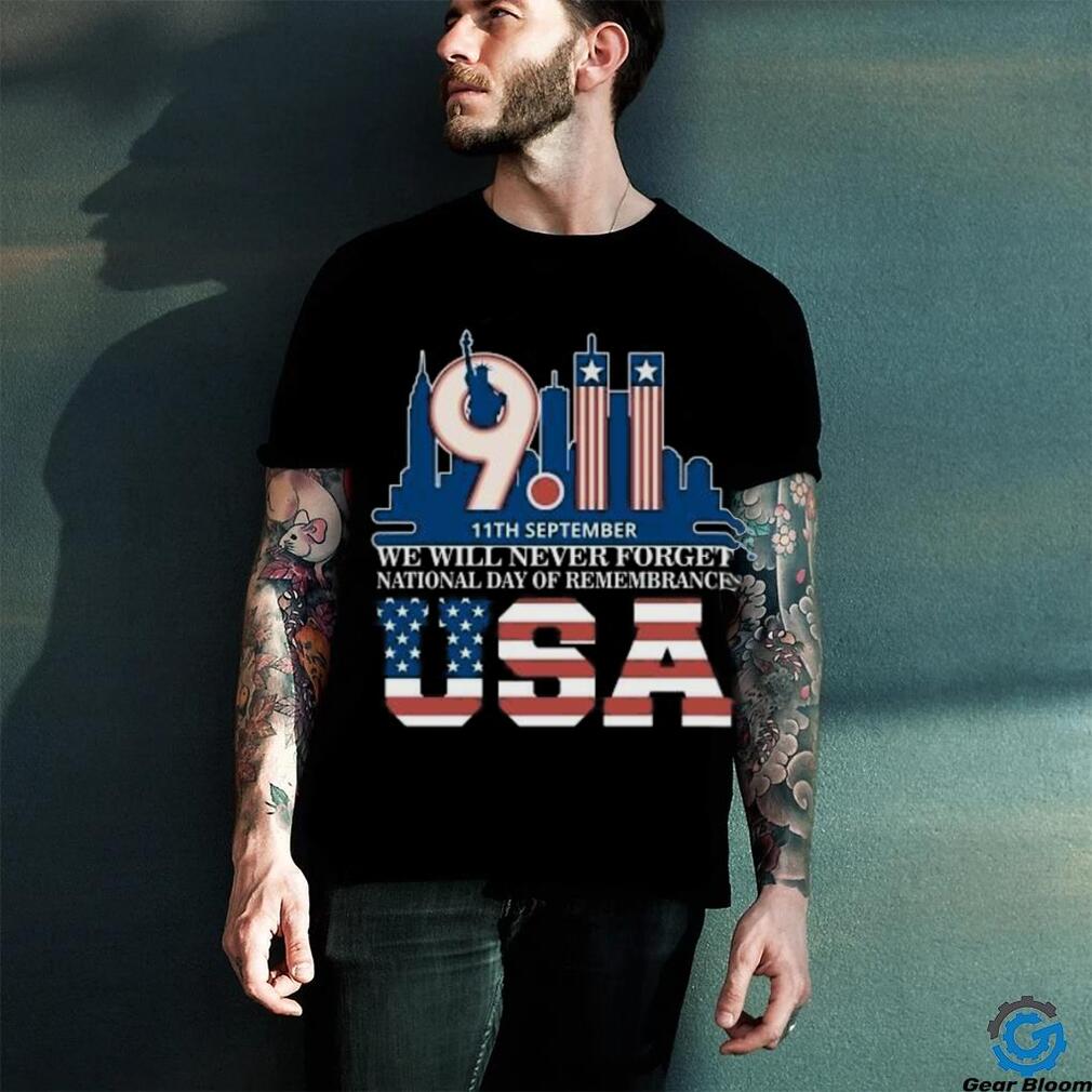 We will never Forget National day of remembrance patriot 911 T Shirt1 is a must-have for any Funny who loves all things teejeep. These shirts typically feature popular TrenΔing Shirt characters, quotes, or logos, and come in a range of styles and colors to suit any taste. Some designs may even feature the dadβs favorite Trending or characters, making them a personalized and thoughtful gift.