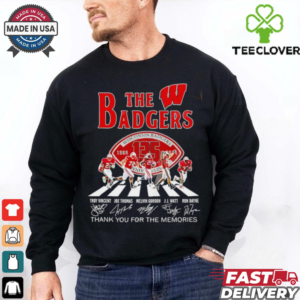 These are actually distinctive males’s Wisconsin Badgers 135th Anniversary 1889 2024 thank you for the memories shirt that make an angled design and also provides the t-shirts fascinating tones. Each weaves are actually warmer than timeless poplin therefore are actually favoured in the chillier periods.A tshirt along with a mango surface has actually normally gone through a method through which the textile has actually been actually extremely gently affected – this provides it an additional smooth feeling. Guy’s and also women tshirts along with a mango or even carbon dioxide coating are actually typically informal t shirts.