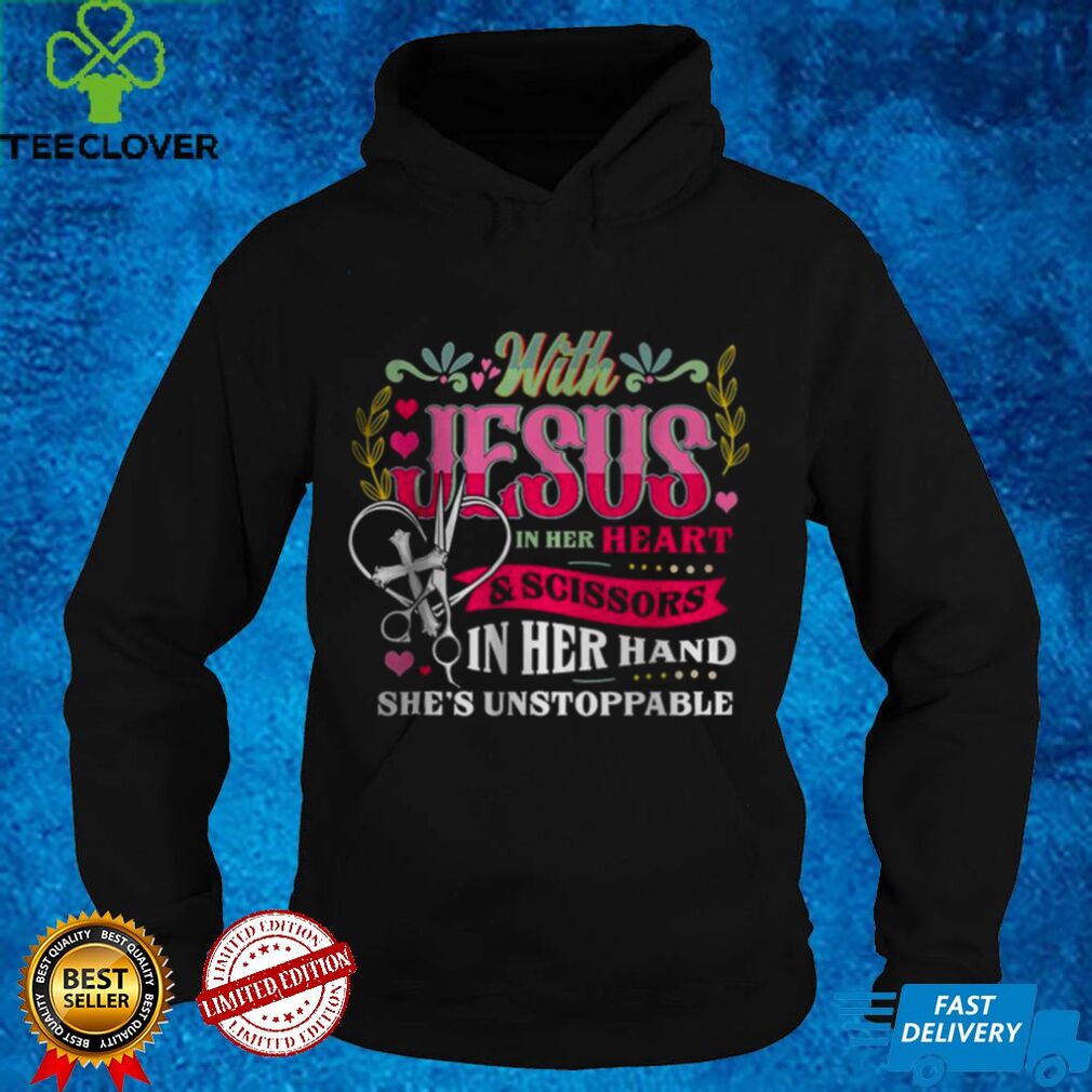 With Jesus In Her Heart And Scissors In Her Hand She Is Unstoppable shirt tee, Hoodie, Sweater, Vneck, Unisex and T-shirt