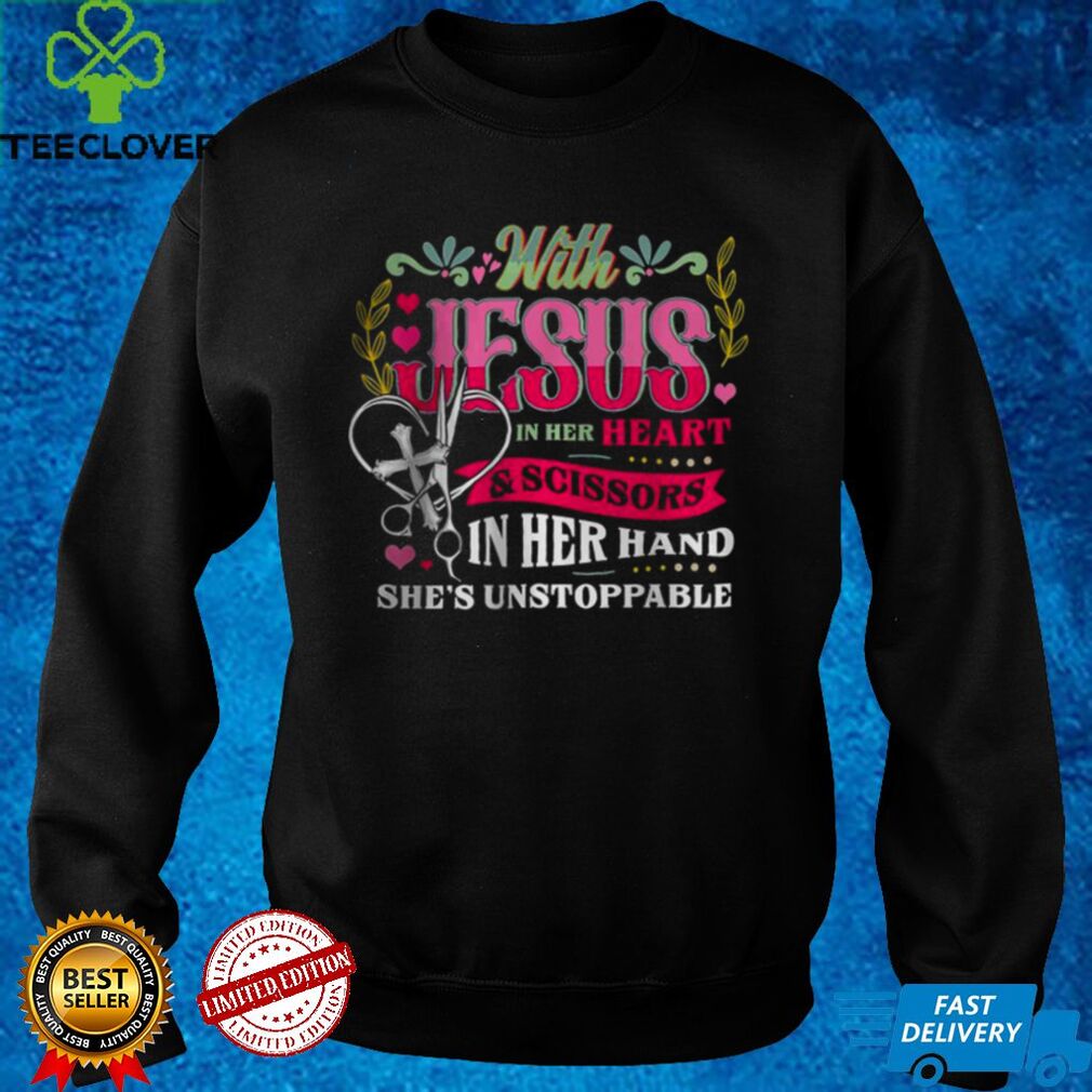 Best With Jesus In Her Heart And Scissors In Her Hand She Is Unstoppable shirt tee