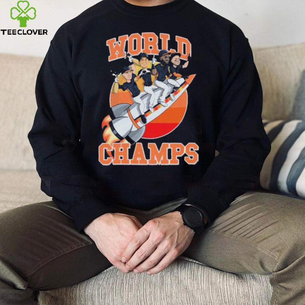(World Champs Houston Astros Fly To Sky Shirt, sweater)Categories Holidays, Fathers Day, Mothers Day of this menโs, womenโs t-shirt, hoodie, sweatshirt and plus size, all sizes from Dad, Family, Liberals. This t-shirt has all kinds of colors black, white, navy, red that is very suitable for trending or holidays for World Champs Houston Astros Fly To Sky Shirt