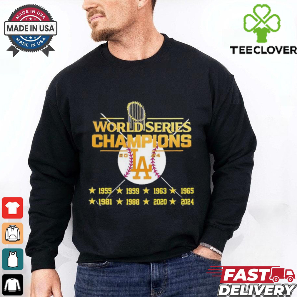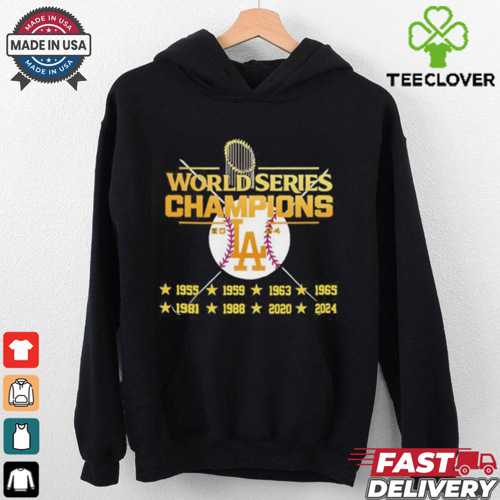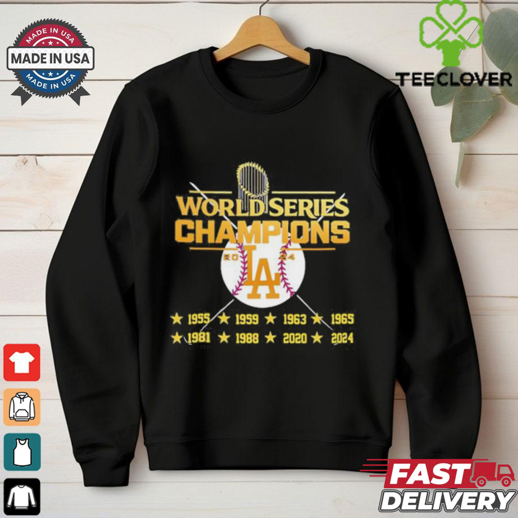 ()World Series Champions Los Angeles Dodgers 1955 1959 1963 1965 1981 1988 2020 2024 shirt hoodie, tank top, sweater and long sleeve t-shirt: best style for you
