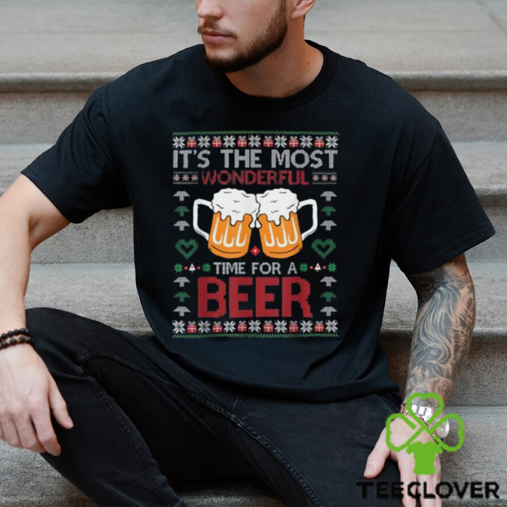 Xmas Wonderful Time For A Beer Ugly Christmas Sweaters T Shirt